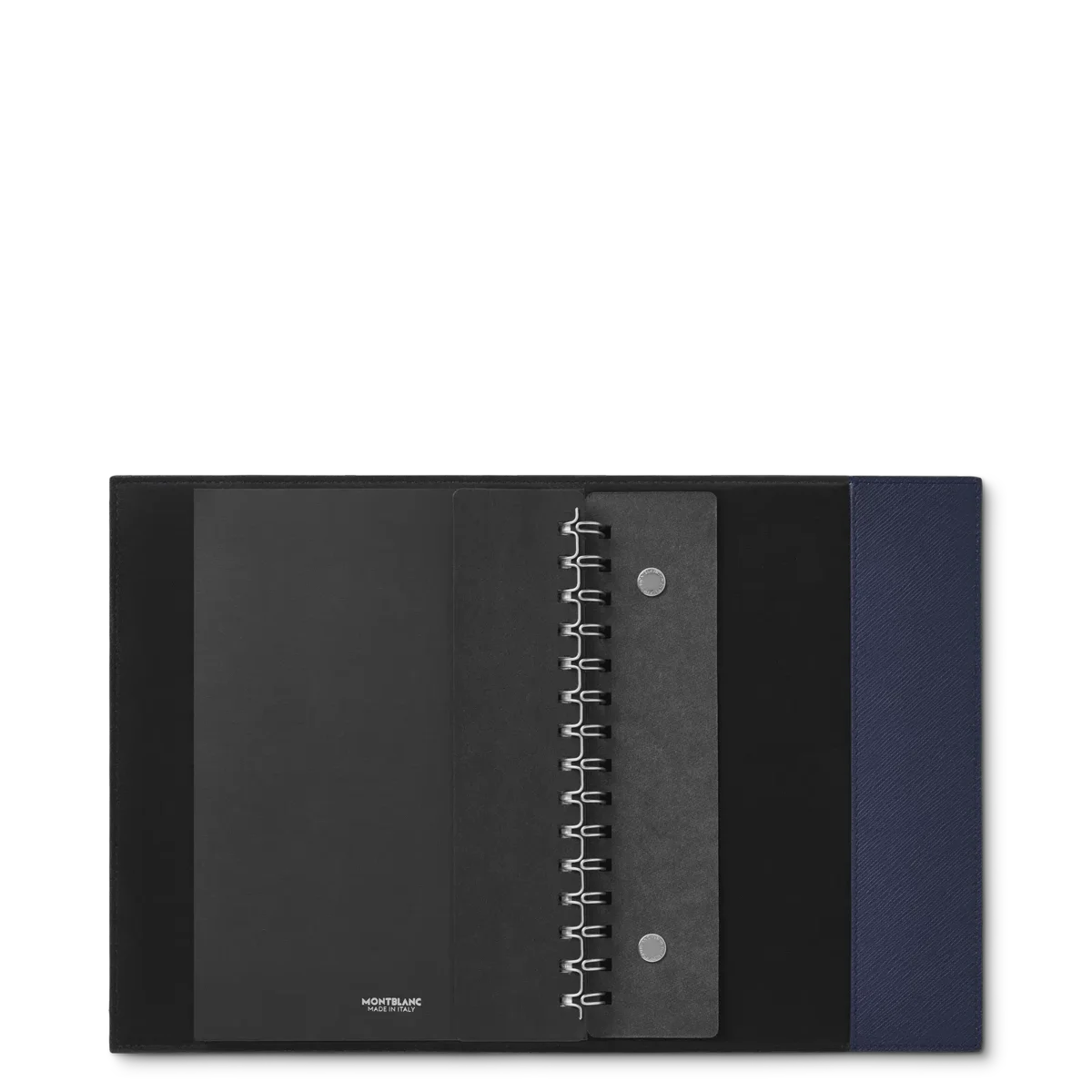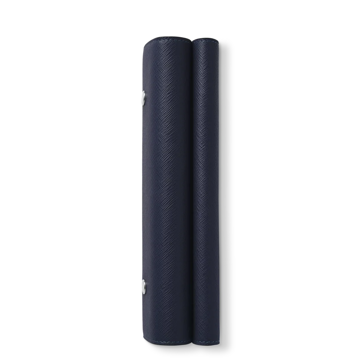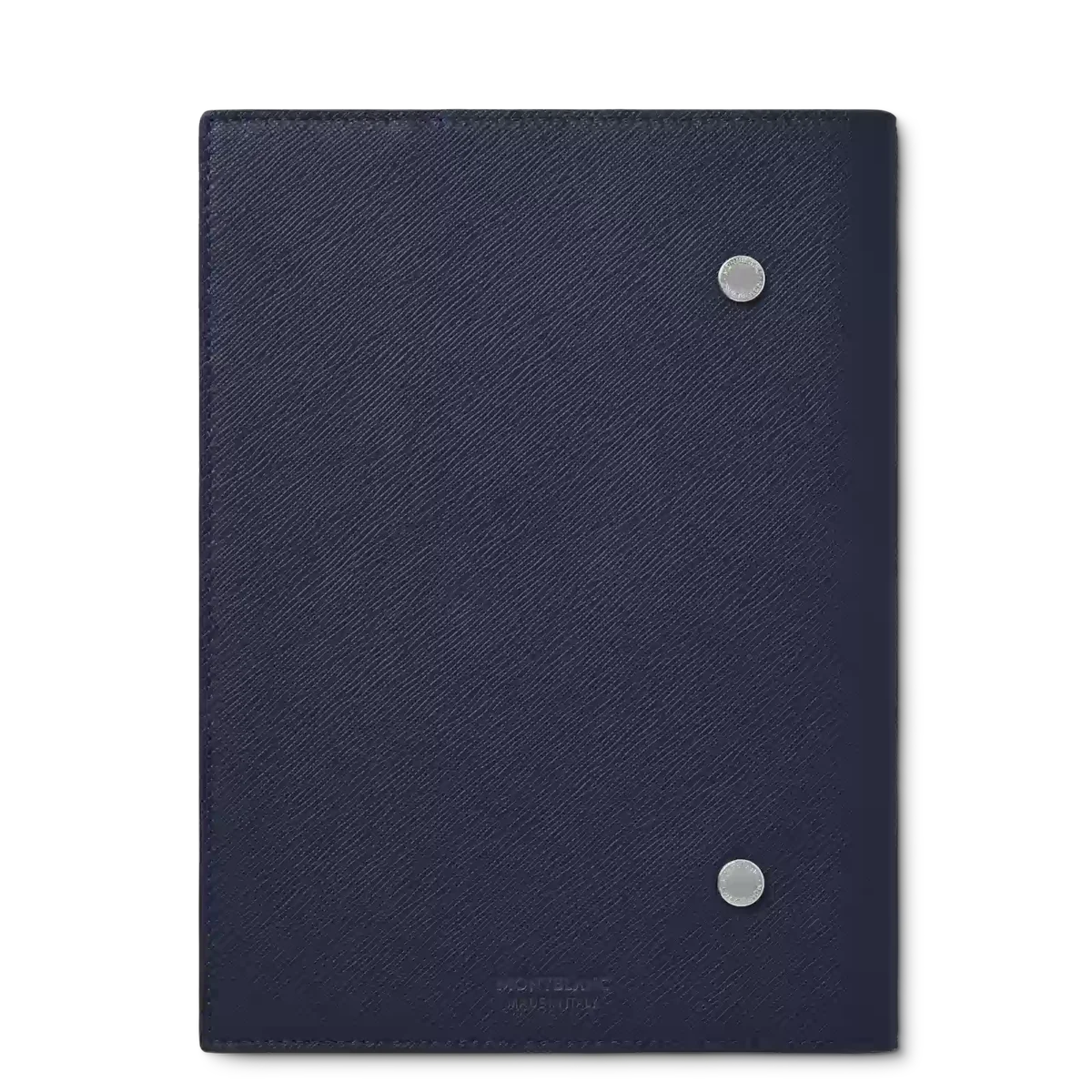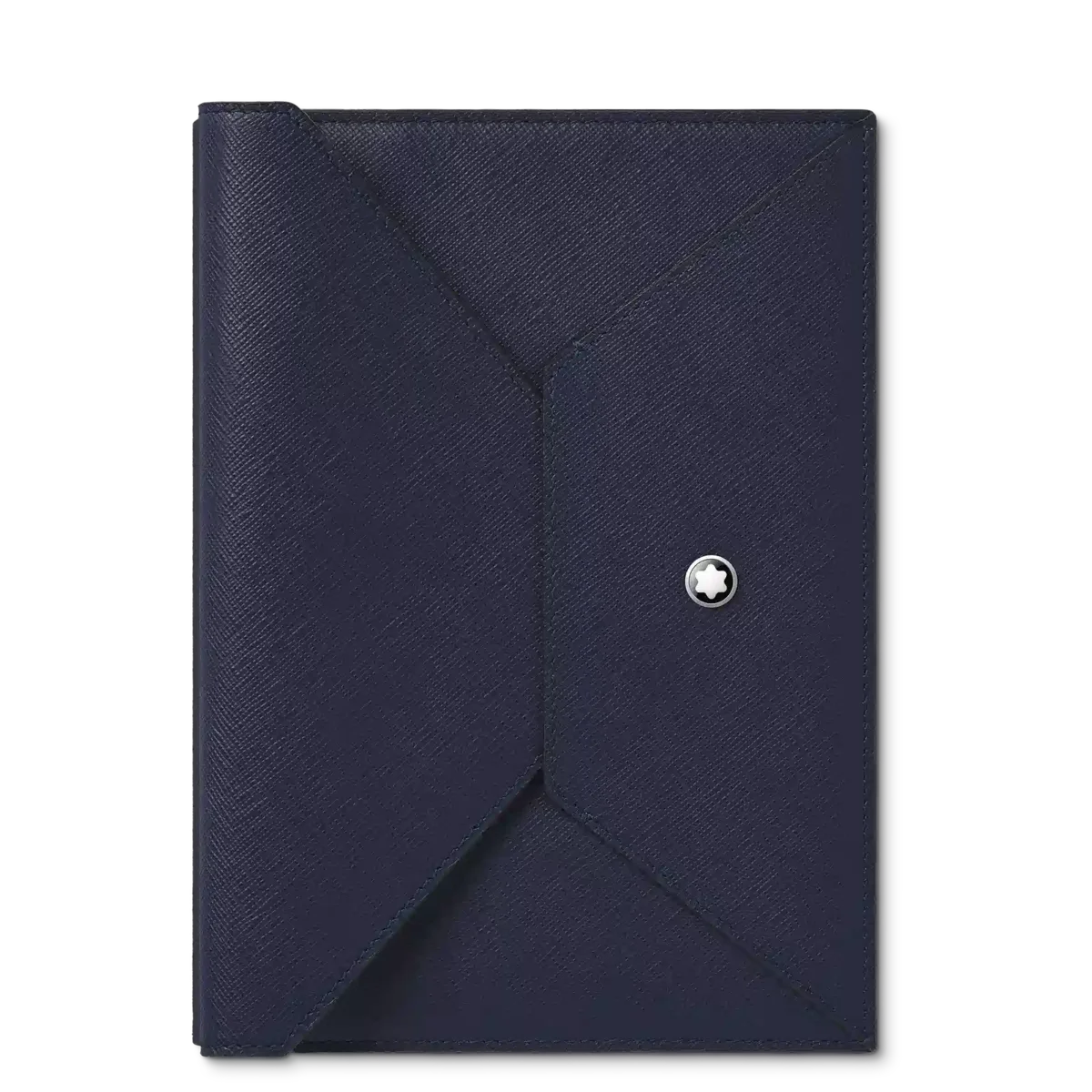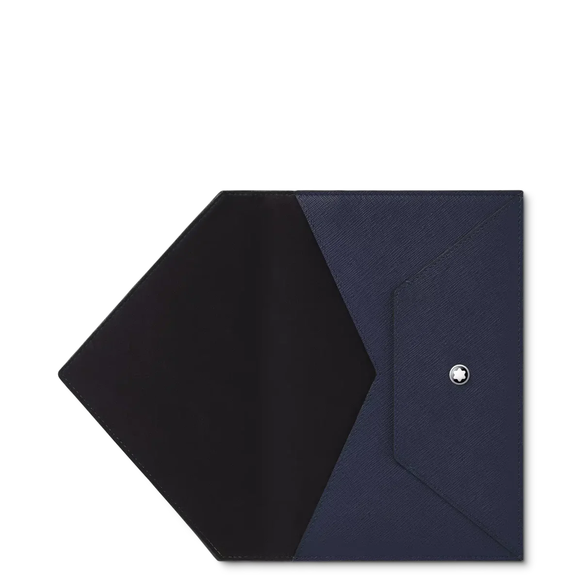 Cuaderno Montblanc Sartorial Envelope en piel saffiano azul tinta. En homenaje al mundo de la escritura, el diseño contemporáneo de este accesorio recuerda la forma de un sobre. Esta bolsa de piel cuenta con dos bolsillos para guardar objetos pequeños. El emblema de Montblanc adorna el cierre con solapa. El cuaderno Envelope incluye el recambio rayado n.º 146, que se fija con botones de presión. Dimensiones: 160 x 210 mm. Fabricado en Italia.
