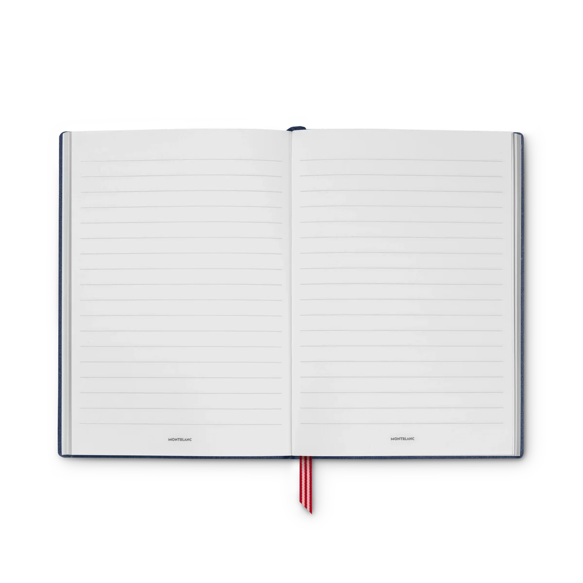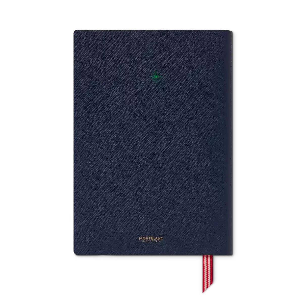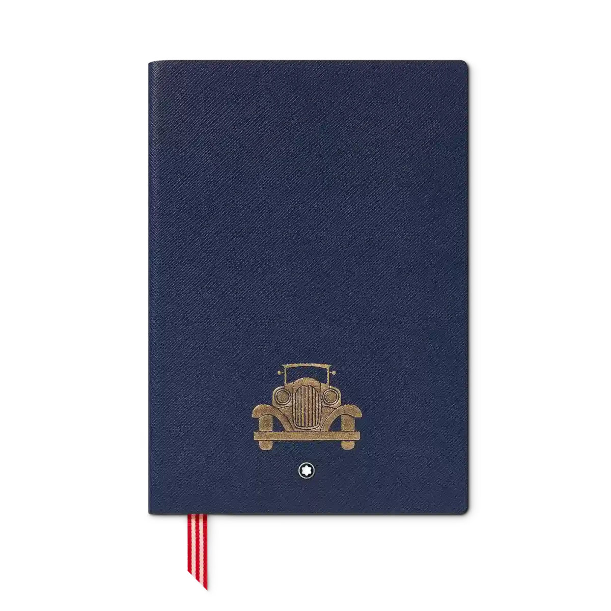 Cuaderno Montblanc n.º 146 – Pequeño, colección Grandes Personajes Homenaje a El gran Gatsby, fabricado en piel azul con estampado y diseño de coches dorados. Fabricado en Italia. 96 hojas / 192 páginas. Dimensiones: 150 x 210 mm.