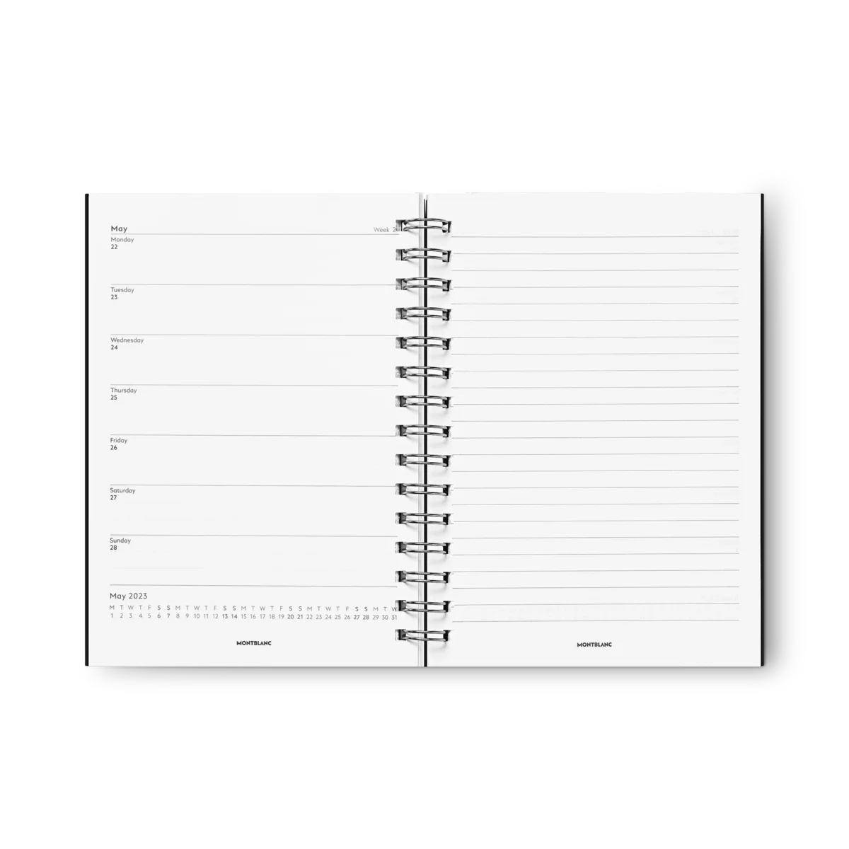 Recambio para cuaderno Envelope #146, tamaño calendario de 18 meses. Calendario en espiral de 18 meses, de septiembre de 2023 a febrero de 2025. Recambio para fijar con botones de presión en el interior del cuaderno Meisterstück Selection Soft Envelope. Dimensiones: 150 x 210 mm. Fabricado en Italia. N.º de identificación: MB132021