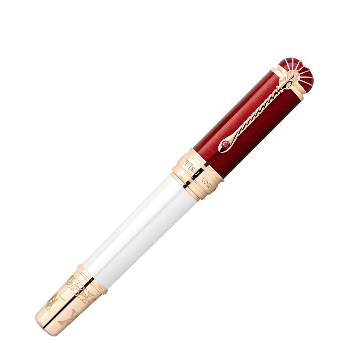 La edición Montblanc Patrón de las Artes de 2022 está dedicada a la reina Victoria y al príncipe Alberto. La edición limitada 4810 es una edición dedicada a una pareja extraordinaria: una edición rinde homenaje a la reina Victoria y otra a su consorte, el príncipe Alberto. La edición limitada Montblanc Patron of Art Homage to Albert 4810 celebra al joven Alberto y presenta un cuerpo lacado en blanco perla, así como un capuchón lacado en tono burdeos translúcido con un patrón especial en la parte inferior. Los accesorios están recubiertos de oro. La forma del clip es un homenaje al cetro de su esposa y está adornado con una piedra sintética roja. La parte superior del capuchón está inspirada en la cúpula del palacio de cristal y está adornada con el emblema de Montblanc, realizado en resina preciosa blanca. Mientras que el anillo del capuchón presenta la cita grabada «treu und fest», un grabado especial decora el cono. Como homenaje a su escudo de armas personal, el plumín artesanal de oro macizo Au 750 lleva un relieve inspirado en el escudo de armas de Sajonia. Con el oro característico y/o el recubrimiento de oro característico, Montblanc describe el tono iluminado del oro amarillo que se ha convertido en un tono muy apreciado para los instrumentos de escritura de la Maison.N.º de identificación MB127849 Peso físico 107 g Dimensiones 145,3 mm * 18,5 mm