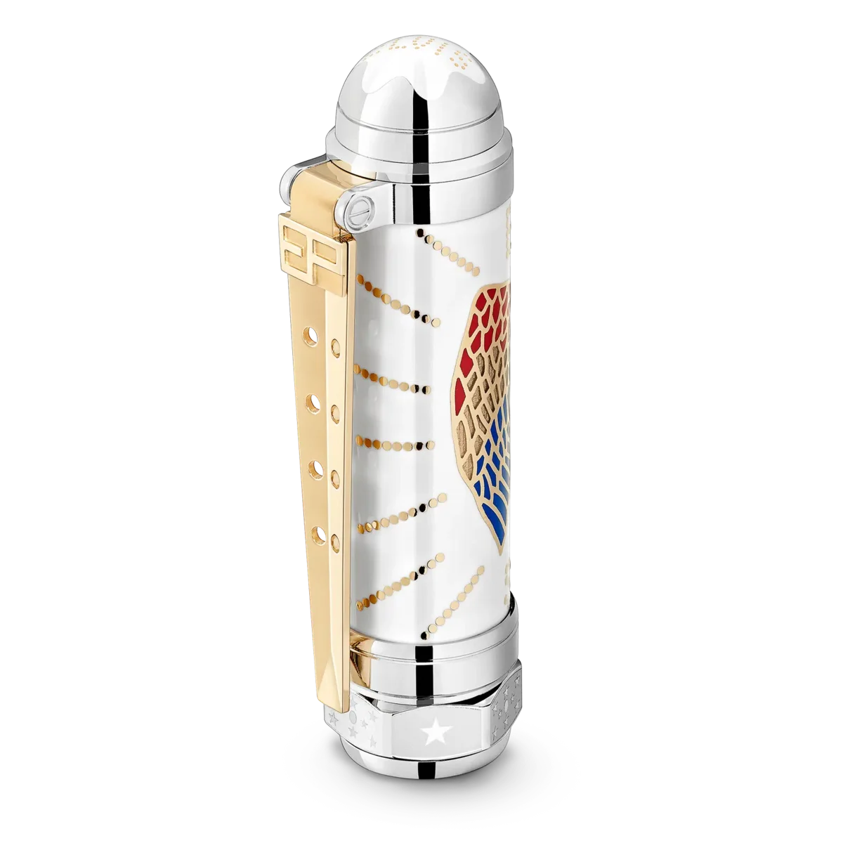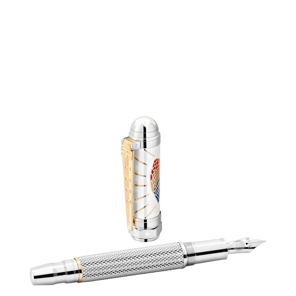 Elvis Presley sigue siendo considerado uno de los iconos culturales más importantes del siglo XX, el «Rey del Rock and Roll» que marcó a toda una generación. Nacido en 1935 en Tupelo, Misisipi, y trasladado a Memphis, Tennessee, Elvis Presley se convirtió en uno de los músicos y actores más famosos. La forma general del instrumento de escritura es la de una bujía de motor de coche, inspirada en la pasión de Elvis por los motores V8, al igual que la forma del clip recubierto de oro. El logotipo «EP» proviene de sus características gafas de sol. La parte superior del capuchón presenta el logotipo «ELVIS» dentro del emblema Montblanc lacado en blanco, y el patrón del capuchón y el cuerpo recubiertos de platino proviene de uno de sus anillos de oro. Su famoso sombrero de «Aloha Hawaii» se toma como base para la decoración lacada del águila en el capuchón, mientras que en el cono está grabada una cita de Elvis: «La ambición es un sueño con un motor V8».N.º de identificación: MB125507 Peso físico: 88,87 g Dimensiones: 146,5 mm * 18,8 mm