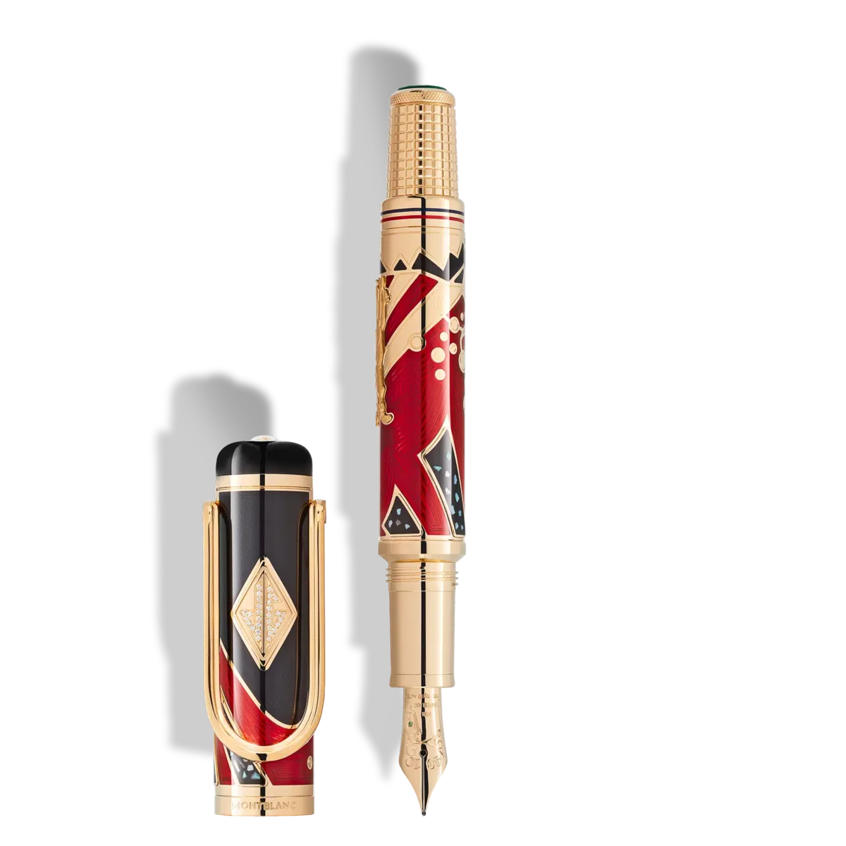 Hay novelas que pasan a la historia de la literatura y, al mismo tiempo, se convierten en símbolo de toda una época. El gran Gatsby, de F. Scott Fitzgerald, es una de esas joyas de la literatura estadounidense moderna. Publicada en 1925, la novela pinta un cuadro fascinante de la era del jazz y los locos años veinte, una época de riqueza y autoindulgencia sin precedentes. La vibrante ciudad de Nueva York, las opulentas mansiones de Long Island y las deslumbrantes fiestas de la alta sociedad son el telón de fondo de la historia de Jay Gatsby, un misterioso millonario que no se detendrá ante nada para recuperar el amor perdido de su juventud, Daisy Buchanan. Montblanc rinde homenaje a esta obra maestra literaria, tantas veces llevada al cine, y a las extravagantes fiestas de los años veinte con la edición limitada Great Characters Homage to The Great Gatsby 8. Extraordinario, elegante, chic: tal era el credo Art Déco que regía el brillante crisol de creatividad artística, convivencia y placer hedonista que era Nueva York. Aparentemente nacido de la abundancia material de los locos años veinte, el sólido oro amarillo de 750 Au del capuchón y el cuerpo contrasta con su vibrante revestimiento de laca roja y negra, a su vez salpicado juguetonamente con incrustaciones de nácar. La excéntrica combinación de formas claras, materiales preciosos y elaboradas técnicas de lacado refleja la sofisticación de la época y la influencia de la artesanía japonesa centenaria, cuyo aspecto exótico y lujoso era muy popular en los años veinte. Inmersa en este efervescente diseño, una pareja elegantemente vestida baila a lo largo del borde del cuerpo. Las dos figuras son la encarnación de un mundo de brillantes cócteles, pero juntas parecen algo alejadas de él. Creada como un guiño a uno de los primeros instrumentos de escritura Montblanc de la época Art Déco, la edición limitada Great Characters Homage to The Great Gatsby 8 cuenta la historia de la brillante existencia de Gatsby en esa época pasada. Colores deslumbrantes, champán burbujeante y una pareja bailando. Gatsby con su amada Daisy, aquí, al menos, para siempre a su lado. Jay Gatsby es la encarnación de un ideal universal, el hombre hecho a sí mismo estadounidense. Sin embargo, detrás de la fachada de riqueza de Gatsby, el sueño comienza a desmoronarse. Su riqueza proviene del tráfico ilegal de alcohol durante la época de la Ley Seca, cuando la bebida prohibida se envasaba a menudo en pequeñas botellas con tapón de rosca que eran fáciles de ocultar. Cada gota era preciosa. En consecuencia, no solo se veneraba el contenido, sino también el diseño de estas petacas. Inspirado en esto, el grabado del cono del instrumento de escritura imita el tapón de rosca grabado de una petaca Art Déco. El mito del sueño americano se evoca en los finos anillos con los colores de la bandera estadounidense que adornan el cono. Al igual que el tapón y el cuerpo, los accesorios de la Great Characters Homage to The Great Gatsby Limited Edition 8 están fabricados en oro amarillo macizo de 750 milésimas, ya que el oro es el símbolo de la riqueza, el poder y el estatus, y el color que más se menciona en la novela. Por el contrario, la laca roja y negra intensa representa la corrupción y la decadencia moral que se esconde tras la brillante fachada de la sociedad acomodada. El poder embriagador, pero aparentemente ilusorio, del dinero está simbolizado por el clip recubierto de oro amarillo con forma de pinza para billetes. Su abertura redondeada resplandece con las iniciales de Jay Gatsby en forma de monograma Art Déco romboidal, una deslumbrante combinación de diamantes en un engaste pavé. El emblema de Montblanc que corona la pluma está hecho de un diamante con un contorno de oro macizo Au 750 rodeado de jade negro, una combinación de materiales que inspiró algunas de las creaciones más elegantes de los diseñadores de joyas del periodo Art Déco. El mensaje central de la novela parece cristalizarse en un único punto: el resplandeciente haz de luz verde en el muelle de la casa de Daisy. Esta misma luz verde brilla desde el corazón del instrumento de escritura, el plumín artesanal de oro macizo Au 750: una tsavorita que ilumina una linterna elaboradamente grabada. Junto con el cabujón verde del cono, representa el anhelo de un futuro mejor y el deseo de Jay Gatsby de recuperar a Daisy. El octavo día marca el comienzo de una nueva semana, una nueva era. Jay Gatsby habría apreciado la interpretación china del ocho como número de la suerte, ya que suena como la palabra que significa fortuna y prosperidad. N.º de identificación MB132025 Peso físico 111,2 g Dimensiones 145 mm * 22 mm * 22 mm