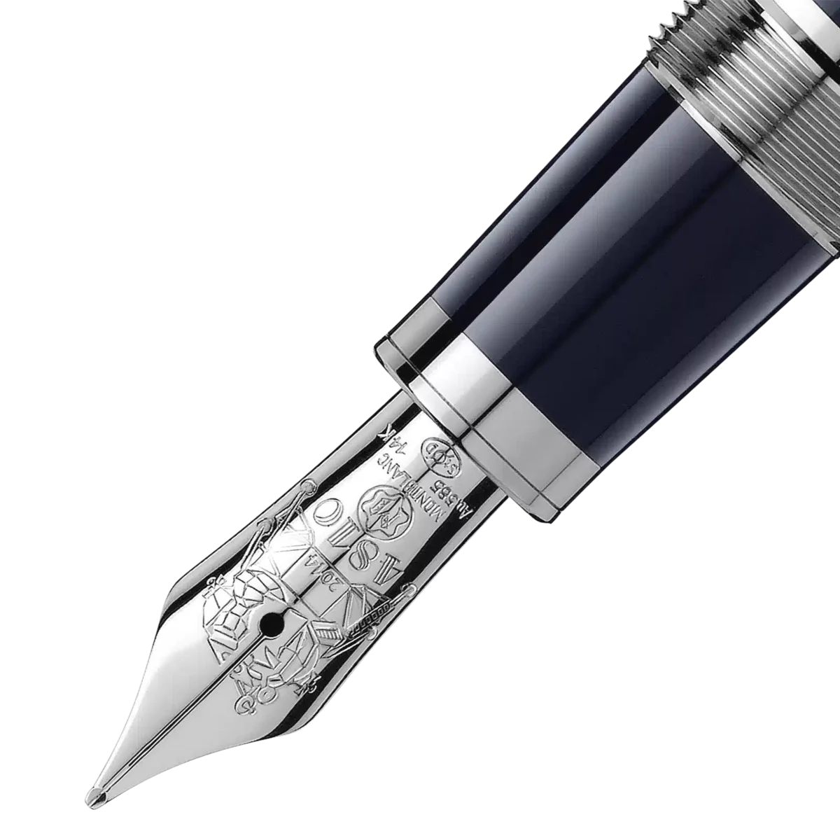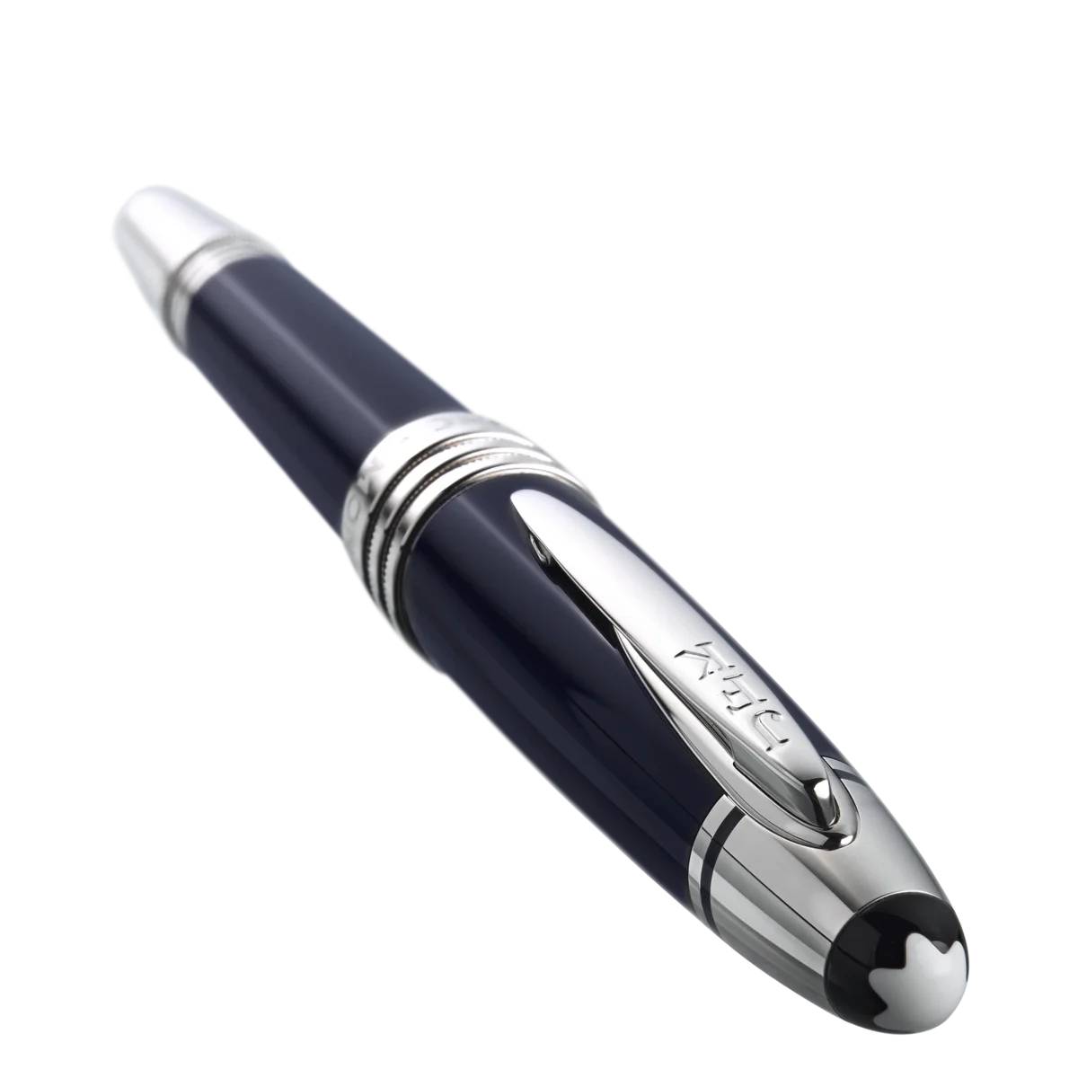 En conmemoración de una de las figuras más veneradas de la historia moderna, la edición especial John F. Kennedy hace referencia simbólica a la vida de J. F. Kennedy en sutiles detalles de diseño. La preciosa resina azul hace referencia tanto al paso de Kennedy por la Marina de los Estados Unidos como al famoso estilo Ivy League. Sus iniciales «JFK» están grabadas en el clip recubierto de platino, y los tres anillos recubiertos de platino del capuchón representan a los tres hermanos de Kennedy. En homenaje a las esperanzas y los sueños nacionales encarnados en el proyecto favorito de Kennedy, el programa espacial Apolo, el plumín de oro 585 hecho a mano está grabado con el módulo lunar que aterrizó en la Luna en 1969. La edición especial está coronada por el emblema de Montblanc en resina preciosa. N.º de identificación: MB132087. Peso físico: 42,29 g. Dimensiones: 147,9 mm * 16,5 mm * 16,5 mm.