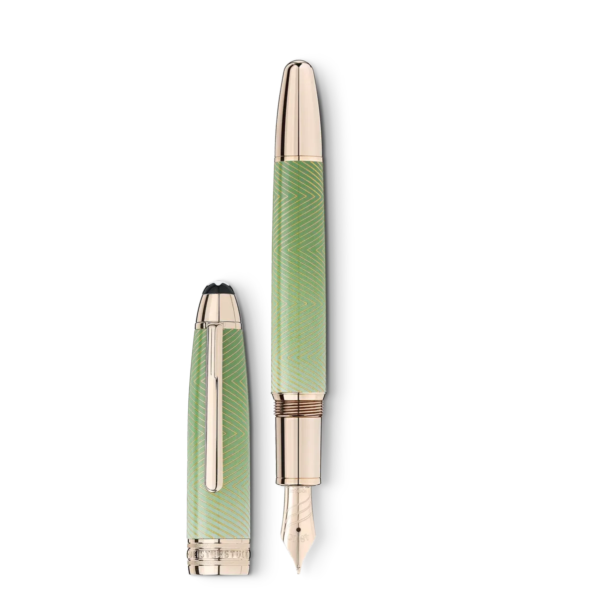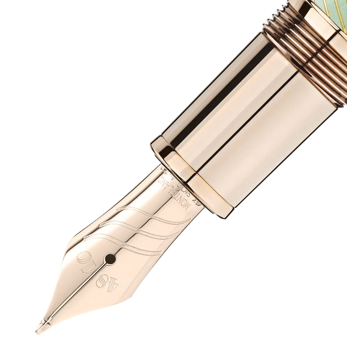 La pluma estilográfica Meisterstück Calligraphy Solitaire Celadon Dégradé se inspira en el encuentro entre el arte y la escritura. Esta pieza es un homenaje contemporáneo a algunas de las artesanías chinas más famosas y atemporales: la porcelana celadón y el tejido de bambú. El instrumento de escritura, con lacado degradado en color celadón, se completa con el característico clip y accesorios recubiertos de oro. La pluma estilográfica está coronada por la innovadora plumilla curvada, fabricada a mano en oro macizo Au750 / 18K y adornada con tres delicadas líneas paralelas, un símbolo inspirado en los movimientos de la caligrafía. La plumilla curvada permite una gran variedad de estilos de escritura y grosores de trazo, dependiendo del ángulo y la orientación con la que se sostenga el instrumento de escritura. Con el baño de oro característico y/o el recubrimiento de oro característico, Montblanc describe el tono iluminado del oro amarillo que se ha convertido en un tono muy apreciado para los instrumentos de escritura de la Maison.N.º de identificación MB129302 Peso físico 62,365 g Dimensiones 147 mm * 15,7 mm