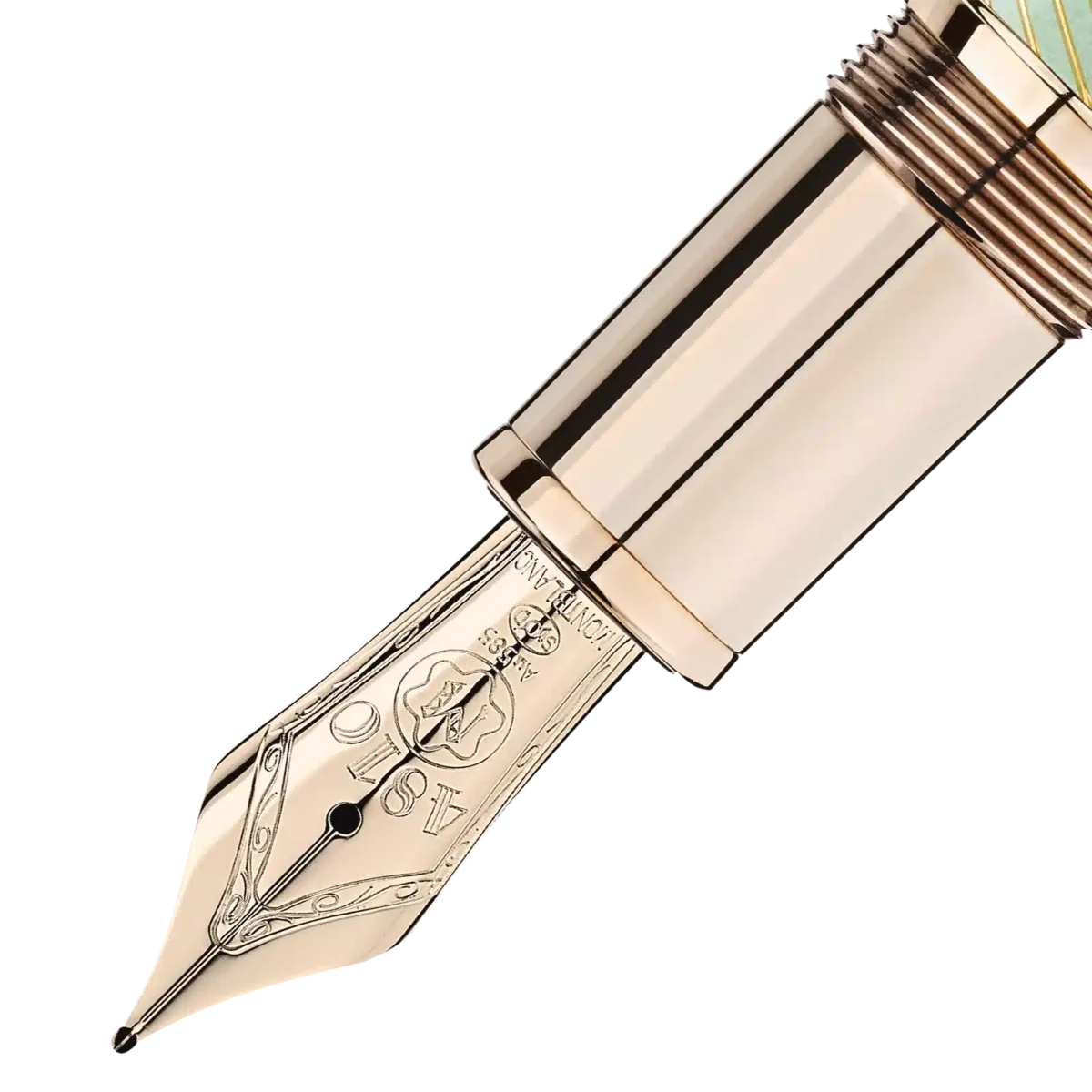 La pluma estilográfica Meisterstück Calligraphy Solitaire Celadon Dégradé se inspira en el encuentro entre el arte y la escritura. Esta pieza es un homenaje contemporáneo a algunas de las artesanías chinas más famosas y atemporales: la porcelana celadón y el tejido de bambú. El instrumento de escritura, con lacado degradado en color celadón, se completa con el característico clip y accesorios recubiertos de oro, y se corona con un plumín de oro macizo Au750 / 18K hecho a mano. Con el característico oro y/o el recubrimiento de oro, Montblanc describe el tono iluminado del oro amarillo, que se ha convertido en un tono muy apreciado para los instrumentos de escritura de la Maison.N.º de identificación MB129553 Peso físico 62,365 g Dimensiones 147 mm * 15,7 mm