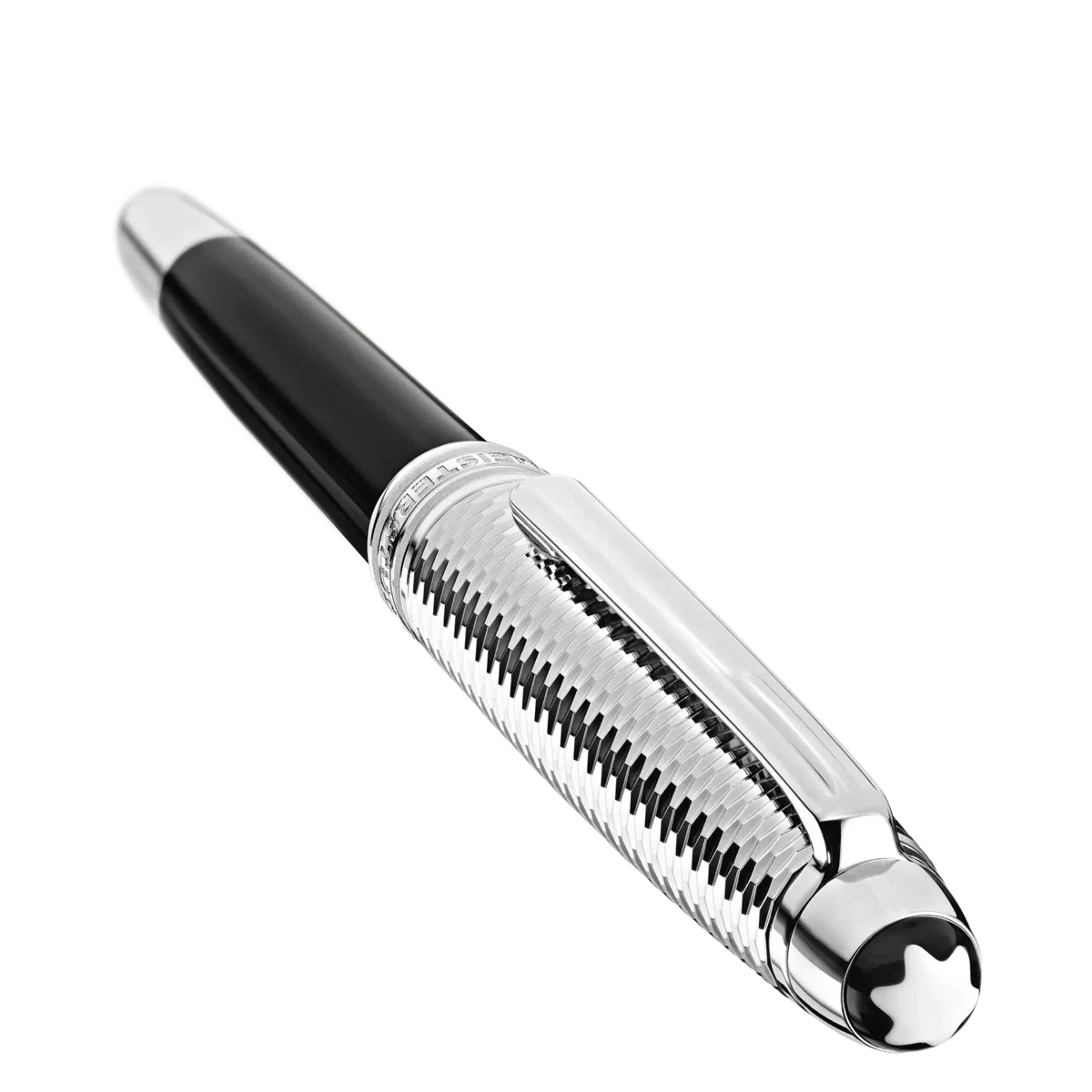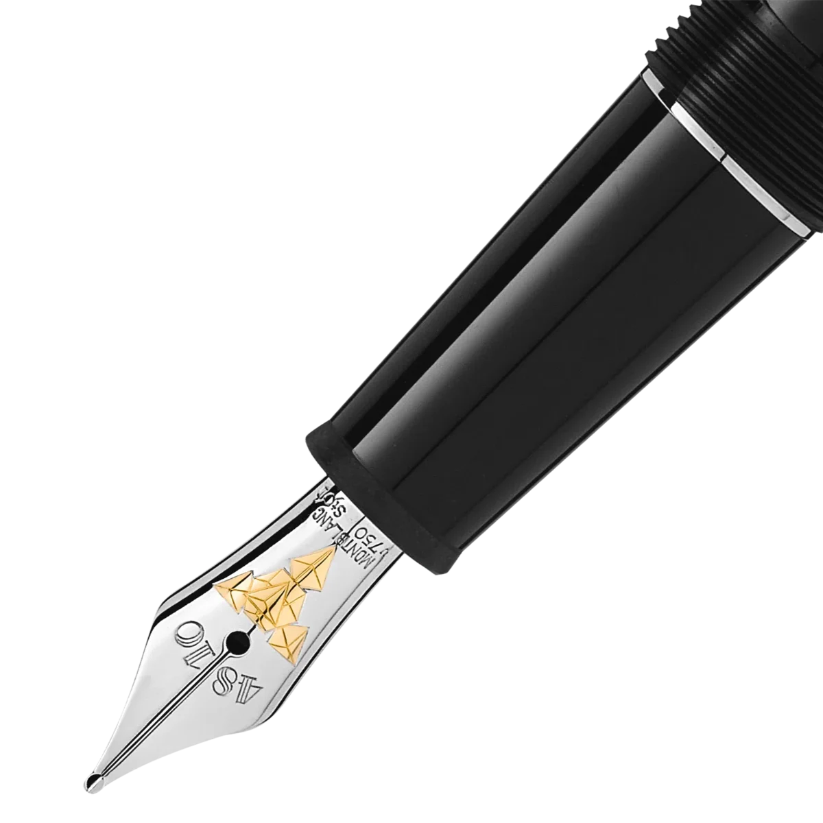 La Meisterstück Solitaire Geometric Dimension nació del deseo de unir el diseño clásico de Montblanc con materiales únicos. Este instrumento de escritura, fabricado en resina preciosa negra, con un grabado tridimensional geométrico en el capuchón con efecto óptico en un sofisticado tono platino, cuenta con un plumín bicolor Au750 con un diseño especial, un clip recubierto de platino y tres anillos recubiertos de platino con el nombre de la marca Montblanc grabado en relieve. Acabado con un emblema Montblanc de nácar, apela a la individualidad de cada persona. N.º de identificación: MB132500 Peso físico: 33,498 g Dimensiones: 140 mm * 13,7 mm