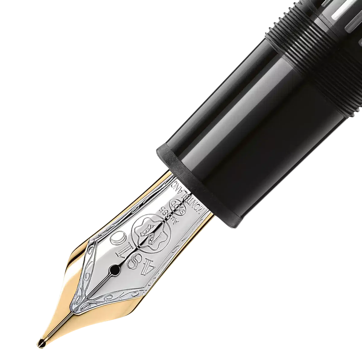 La Meisterstück LeGrand, fabricada en preciosa resina de color negro intenso con detalles chapados en oro, coronada por el emblema de la estrella blanca y rematada con un plumín de oro hecho a mano, se convierte en un icono del diseño de Montblanc.N.º de identificación MB132458VG