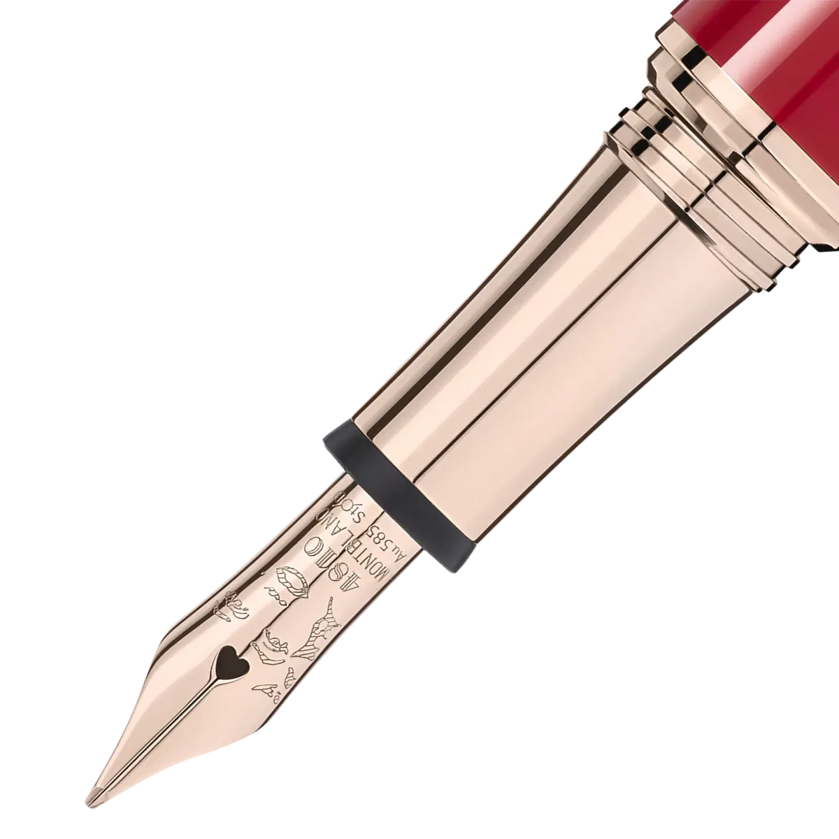 Marilyn Monroe (1926-1962) se ha convertido en un ícono cultural estadounidense, admirada por muchos en todo el mundo. La actriz fue una prodigio de Lee Strasberg y uno de los símbolos sexuales más populares de la década de 1950. Hasta el día de hoy, sigue inspirando a mujeres de todo el mundo, lo que le garantiza su estatus como ícono cultural y de estilo. El diseño de la edición especial Marilyn Monroe se inspira en los icónicos tacones altos de Ferragamo que Marilyn solía llevar, reflejando su feminidad y sensualidad. El color del instrumento de escritura hace referencia a su pintalabios característico (Ruby Tuesday de Max Factor). La forma del clip con perla recuerda sus joyas y su amor por las perlas. N.º de identificación: MB132115 Peso físico: 144 g Dimensiones: 145 mm * 17,3 mm