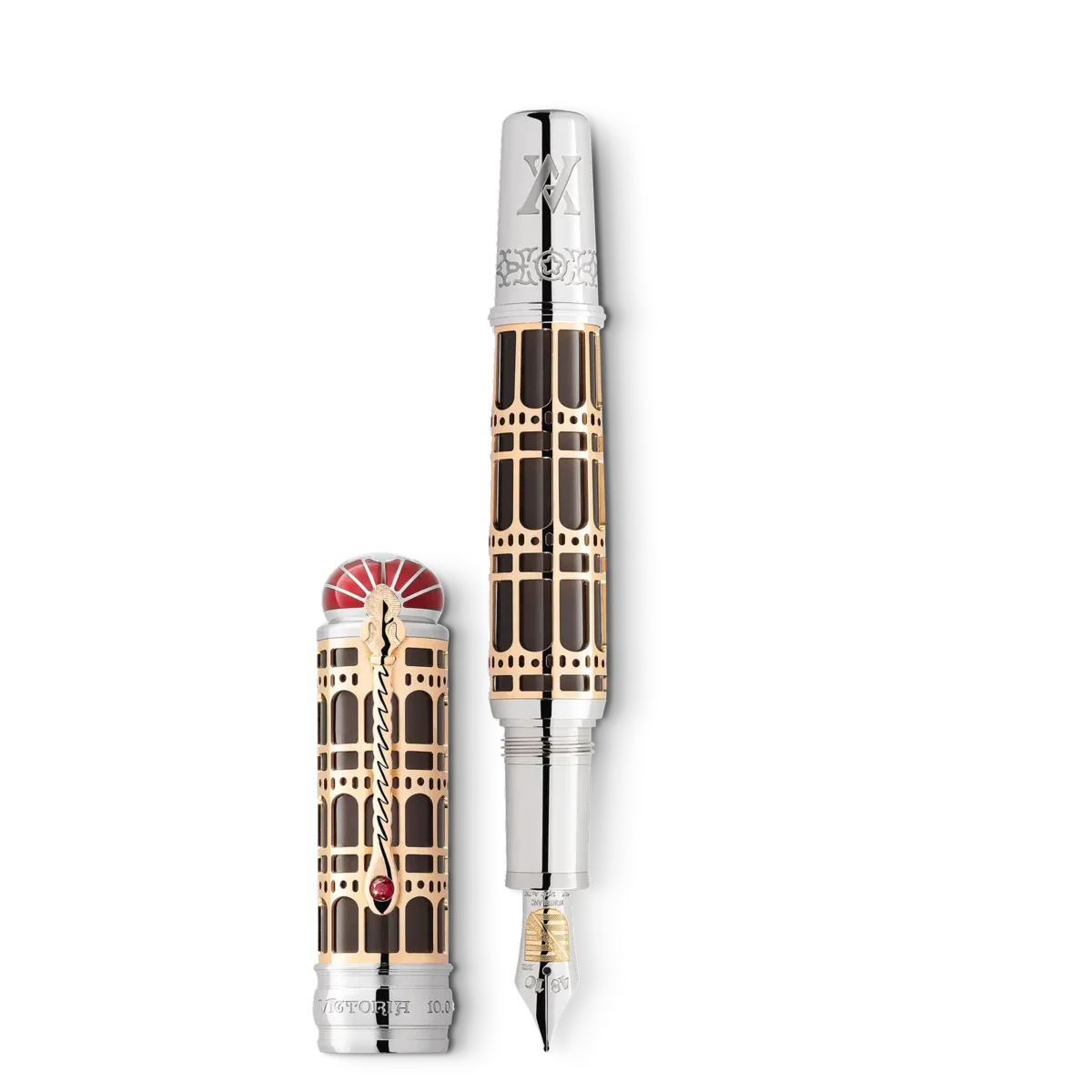 La edición Montblanc Patron of Art de 2022 está dedicada a la reina Victoria y al príncipe Alberto. La edición limitada 888 es una edición dedicada a una pareja extraordinaria, una edición en honor a la reina Victoria y otra a su consorte, el príncipe Alberto. La edición limitada Montblanc Patron of Art Homage to Albert 888 rinde homenaje al príncipe Alberto y a sus grandes logros. La pluma estilográfica viene con un capuchón y un cuerpo fabricados en laca gris translúcida y una sólida capa esquelética de oro Au 750. El esqueleto está inspirado en el Crystal Palace que Albert construyó y donde celebró «La Gran Exposición» en 1851. El color gris es un homenaje al tartán que Albert creó él mismo para el castillo de Balmoral en Escocia. Los accesorios están recubiertos de platino. La forma del clip es un homenaje al cetro de su esposa y está adornado con un granate rojo. La parte superior del capuchón está inspirada en la cúpula del Crystal Palace y está adornada con el emblema de Montblanc realizado en nácar. Mientras que el anillo del capuchón lleva grabado «Albert» y la fecha de su boda, como si se tratara de una alianza, el cono está decorado con un grabado especial. Como homenaje a su escudo de armas personal, el plumín bicolor de oro macizo Au 750 hecho a mano lleva un relieve inspirado en el escudo de armas de Sajonia. Con el oro característico y/o el recubrimiento de oro característico, Montblanc describe el tono iluminado del oro amarillo que se ha convertido en un tono apreciado para los instrumentos de escritura de la Maison.N.º de identificación MB127872 Peso físico 100 g Dimensiones 145,3 mm * 18,5 mm