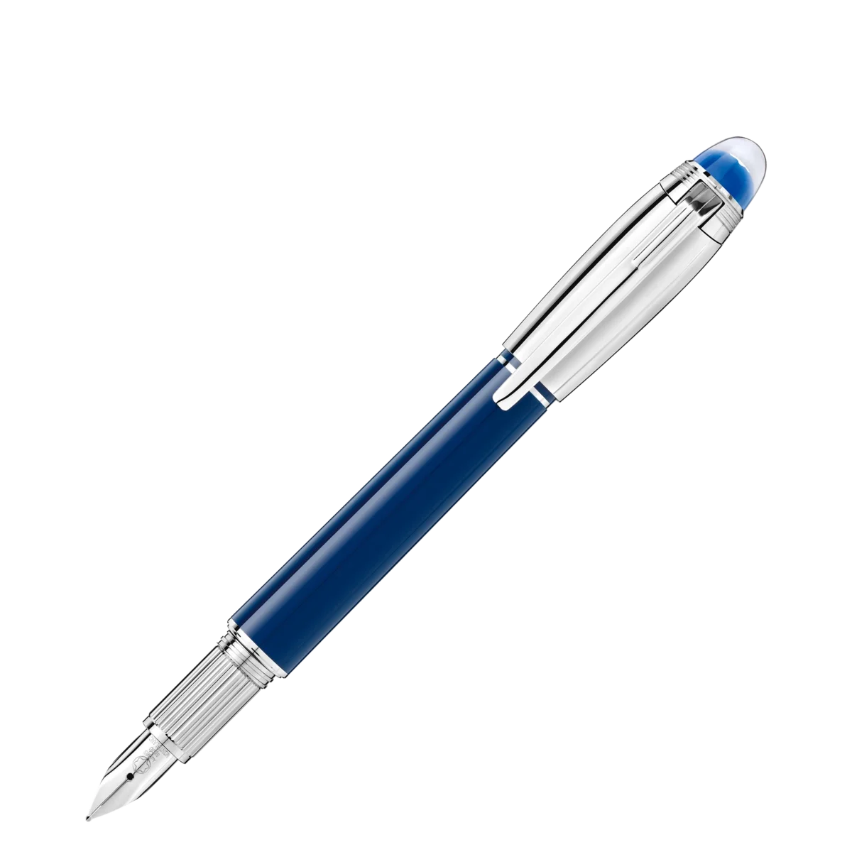StarWalker Blue Planet trata sobre caminar entre las estrellas, explorar el cosmos y galaxias lejanas, y formar parte de una de las aventuras más misteriosas y poderosas que la humanidad haya emprendido jamás: la exploración espacial. Al acercarnos a nuestro planeta Tierra, nos inspiramos en el agua, fuente de vida. La tecnología del emblema StarWalker presenta una cúpula azul translúcida con una estrella flotando en la parte superior, que representa la Tierra emergiendo sobre el horizonte lunar vista desde la Luna. La pluma estilográfica StarWalker Blue Planet Doué viene con un capuchón y accesorios recubiertos de platino y un cuerpo de resina preciosa azul. La pluma estilográfica está fabricada a mano con plumín de oro Au585 /14 K recubierto de rodio. N.º de identificación: MB132434. Peso físico: 34,09 g. Dimensiones: 135,7 mm * 14,9 mm.