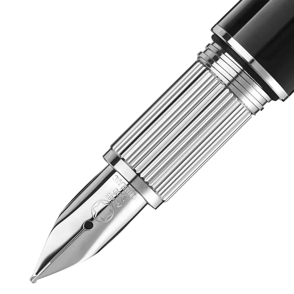 El nuevo StarWalker trata sobre caminar entre las estrellas. Se trata de explorar el cosmos y galaxias lejanas. Se trata de formar parte de una de las aventuras más misteriosas y poderosas de la humanidad: la exploración espacial. El nuevo diseño de la colección celebra la inmensa emoción, descrita por todos los viajeros espaciales, de ver nuestro planeta azul flotando en la inmensidad del espacio. La tecnología del emblema StarWalker presenta una cúpula azul translúcida bajo el emblema de Montblanc, que recuerda a la Tierra emergiendo sobre el horizonte lunar. La StarWalker Doué viene con un capuchón y accesorios recubiertos de platino y un cuerpo de resina preciosa negra. La pluma estilográfica está fabricada a mano con plumín de oro Au585 /14 K recubierto de rodio. N.º de identificación: MB132534. Peso físico: 42,88 g. Dimensiones: 135,7 mm * 14,9 mm.