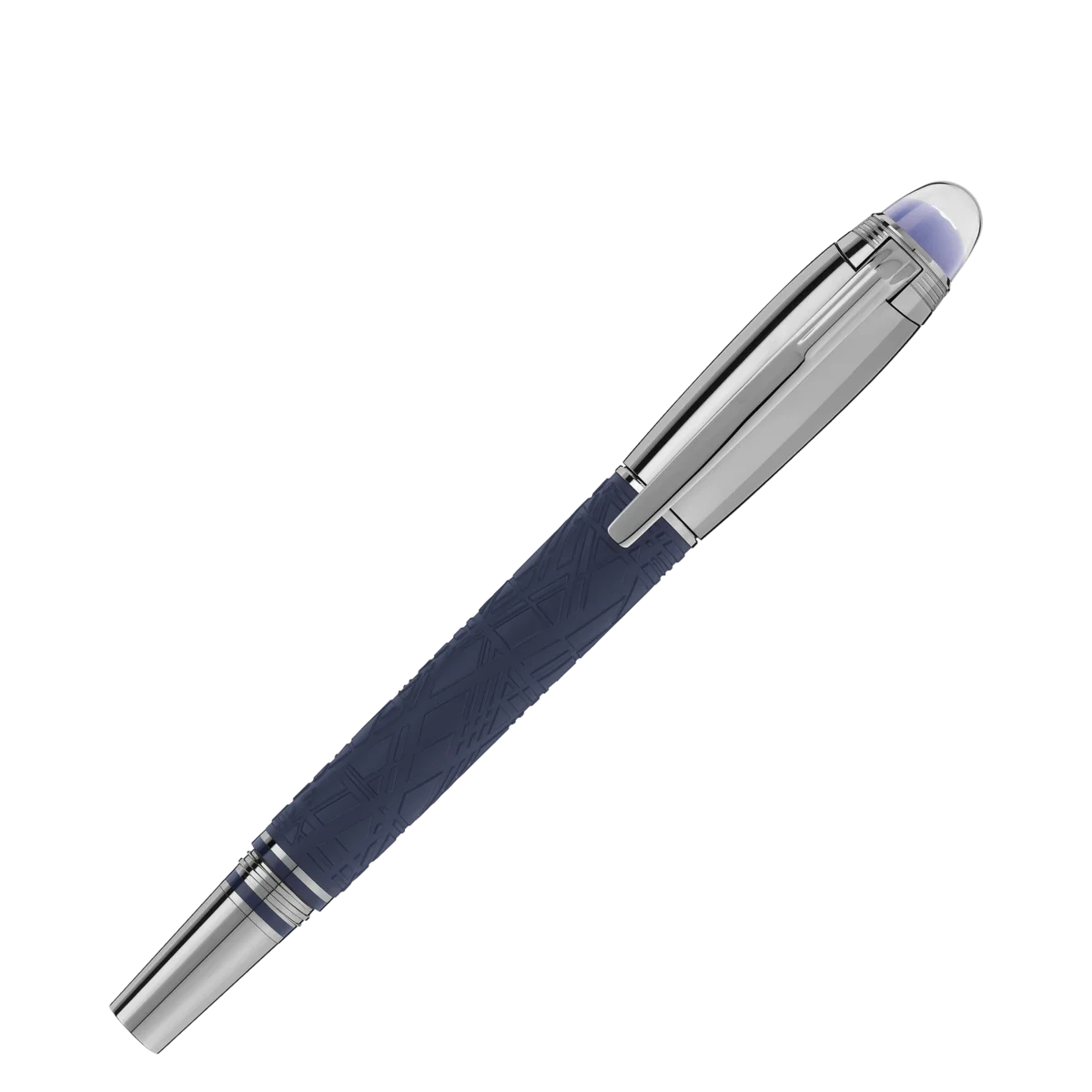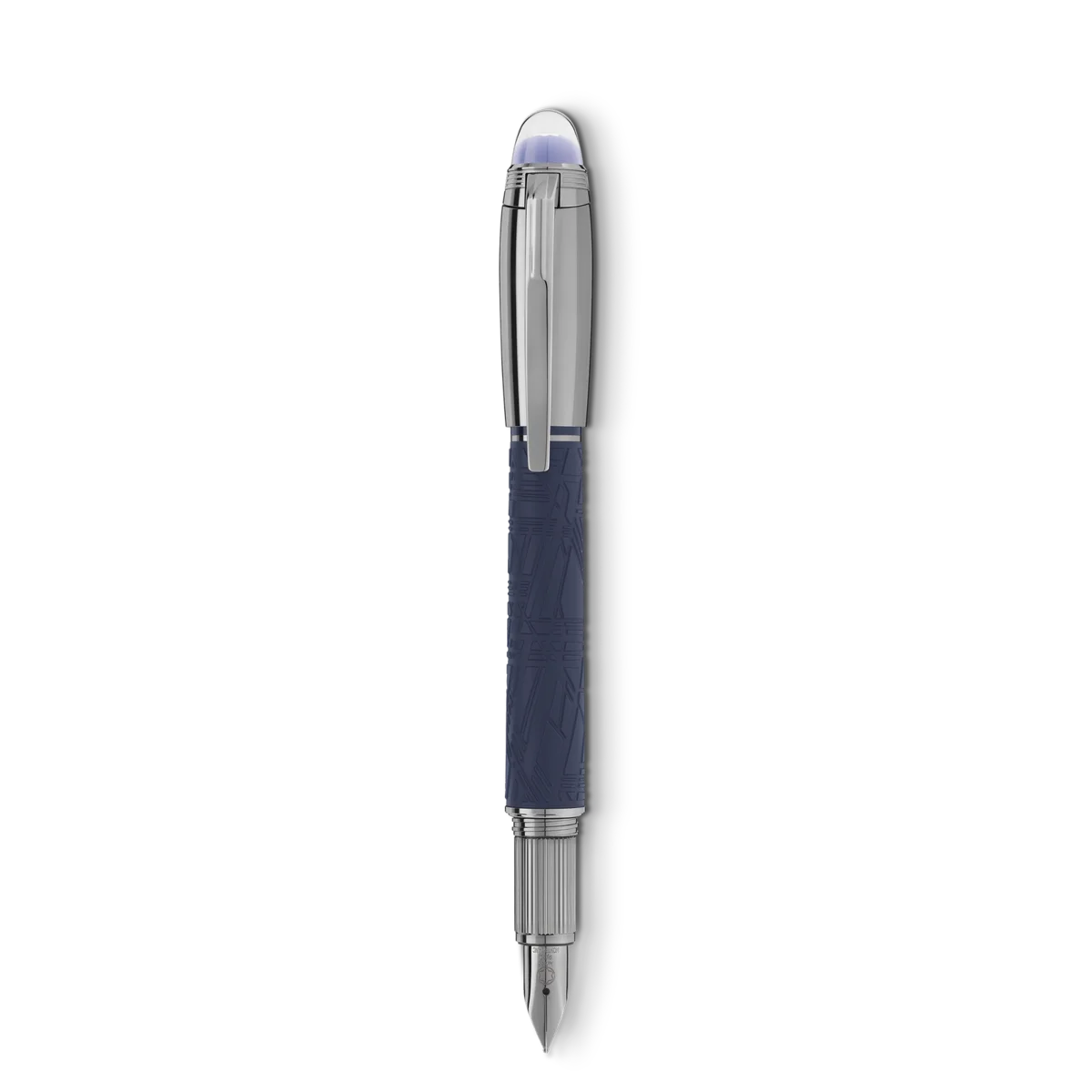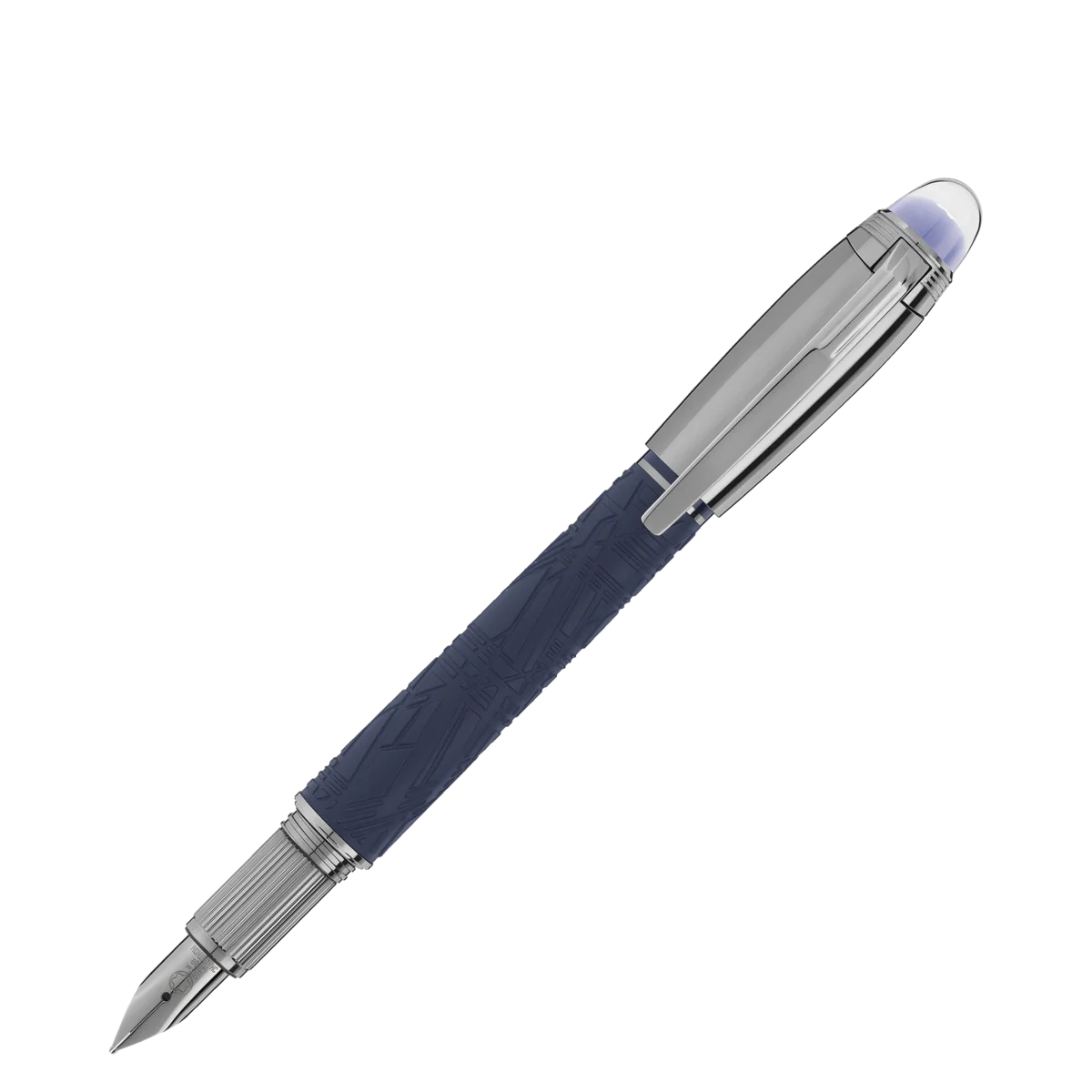 StarWalker SpaceBlue mira más allá del planeta Tierra y se dirige hacia las estrellas y la galaxia. Esta nueva colección StarWalker aporta un nuevo aspecto al cuerpo de resina, con un diseño que recuerda las intrincadas estructuras del patrón de Widmanstätten, una de las creaciones más hipnóticas de la naturaleza. El capuchón y los accesorios metálicos están recubiertos de rutenio oscuro, acompañado de un tono azul espacial intenso para la resina preciosa mate, que recuerda los matices de un cielo estrellado. Además, la subcúpula de la parte superior del capuchón, sobre la que flota el emblema de Montblanc, es de color azul espacial intenso. La pluma estilográfica está fabricada a mano con un plumín de oro Au 585 recubierto de rutenio. N.º de identificación: MB130214. Peso físico: 37,25 g. Dimensiones: 135,7 mm * 14,9 mm.