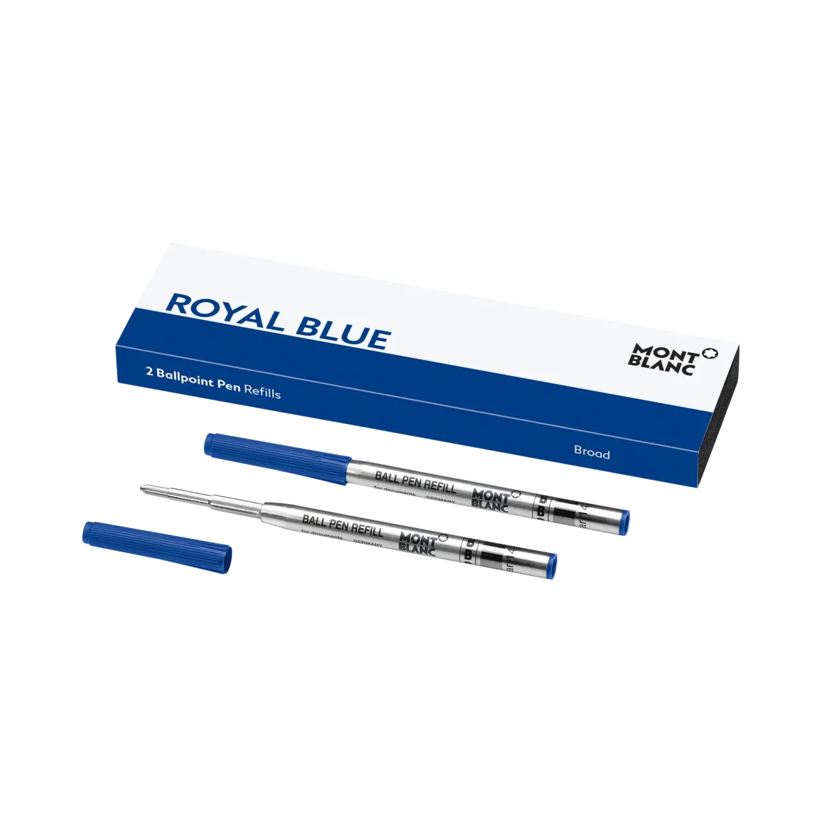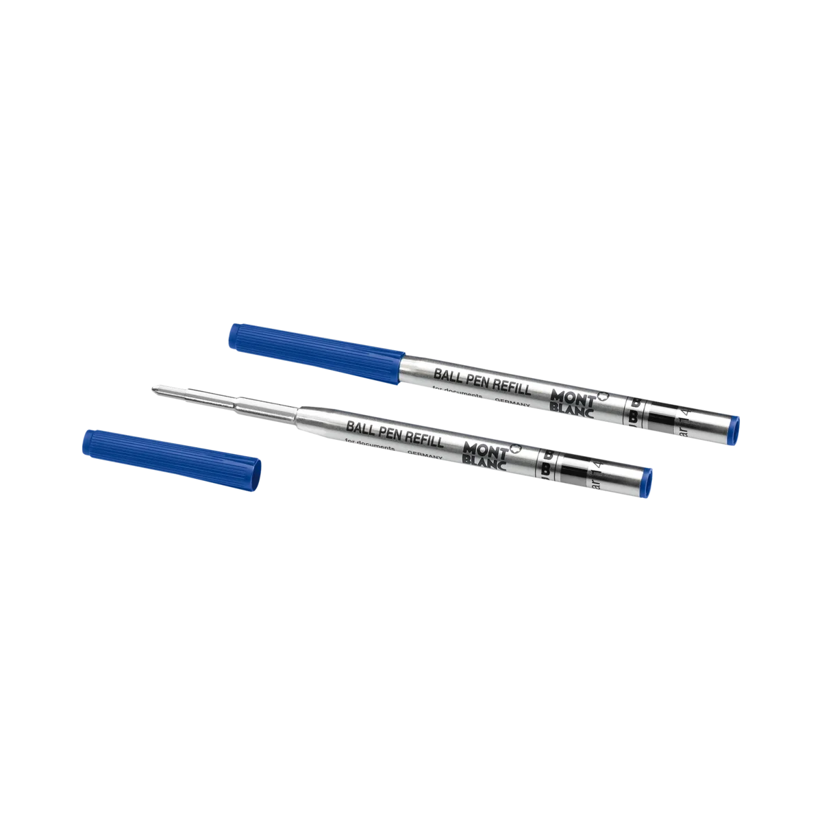 Adecuadas para todos los bolígrafos Montblanc, excepto Meisterstück Homage to W.A. Mozart. Los colores de los bolígrafos Montblanc «Negro misterioso», «Azul real», «Rojo Modena» y «Verde irlandés» son a prueba de documentos y han sido probados según la norma DIN ISO 12757-2.Unidades de embalaje = 2 recambios B = ancho