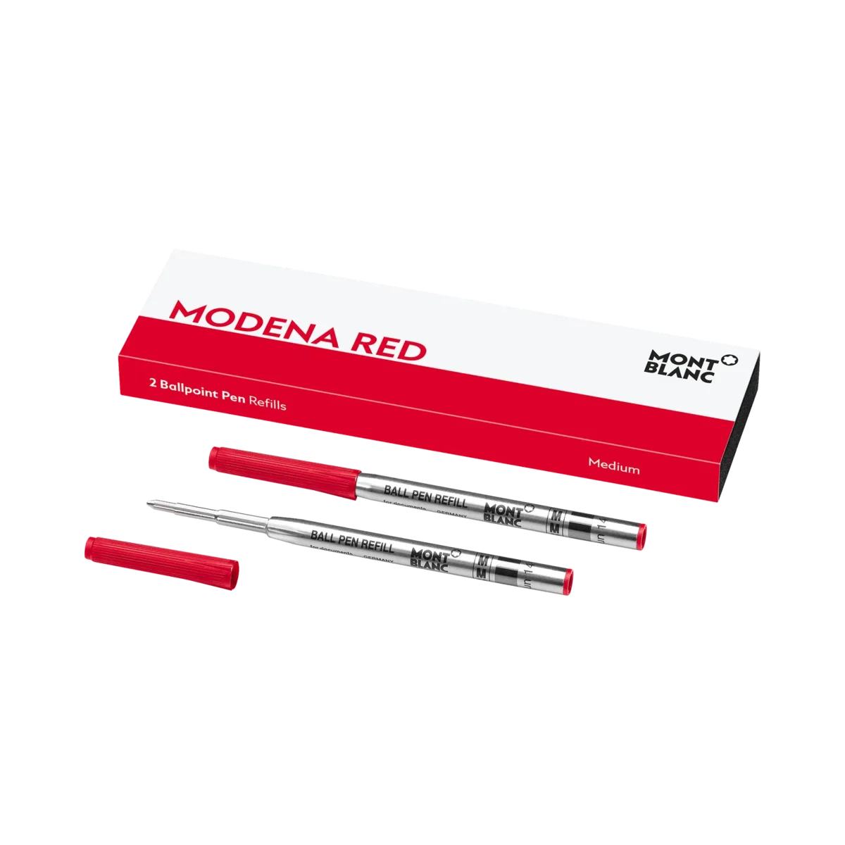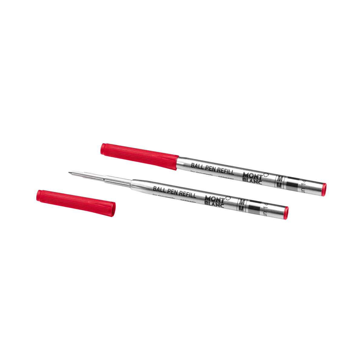 Adecuadas para todos los bolígrafos Montblanc, excepto Meisterstück Homage to W.A. Mozart. Los colores de los bolígrafos Montblanc «Negro misterioso», «Azul real», «Rojo Modena» y «Verde irlandés» son a prueba de documentos y han sido probados según la norma DIN ISO 12757-2. Unidades de embalaje = 2 recambios M = Medio