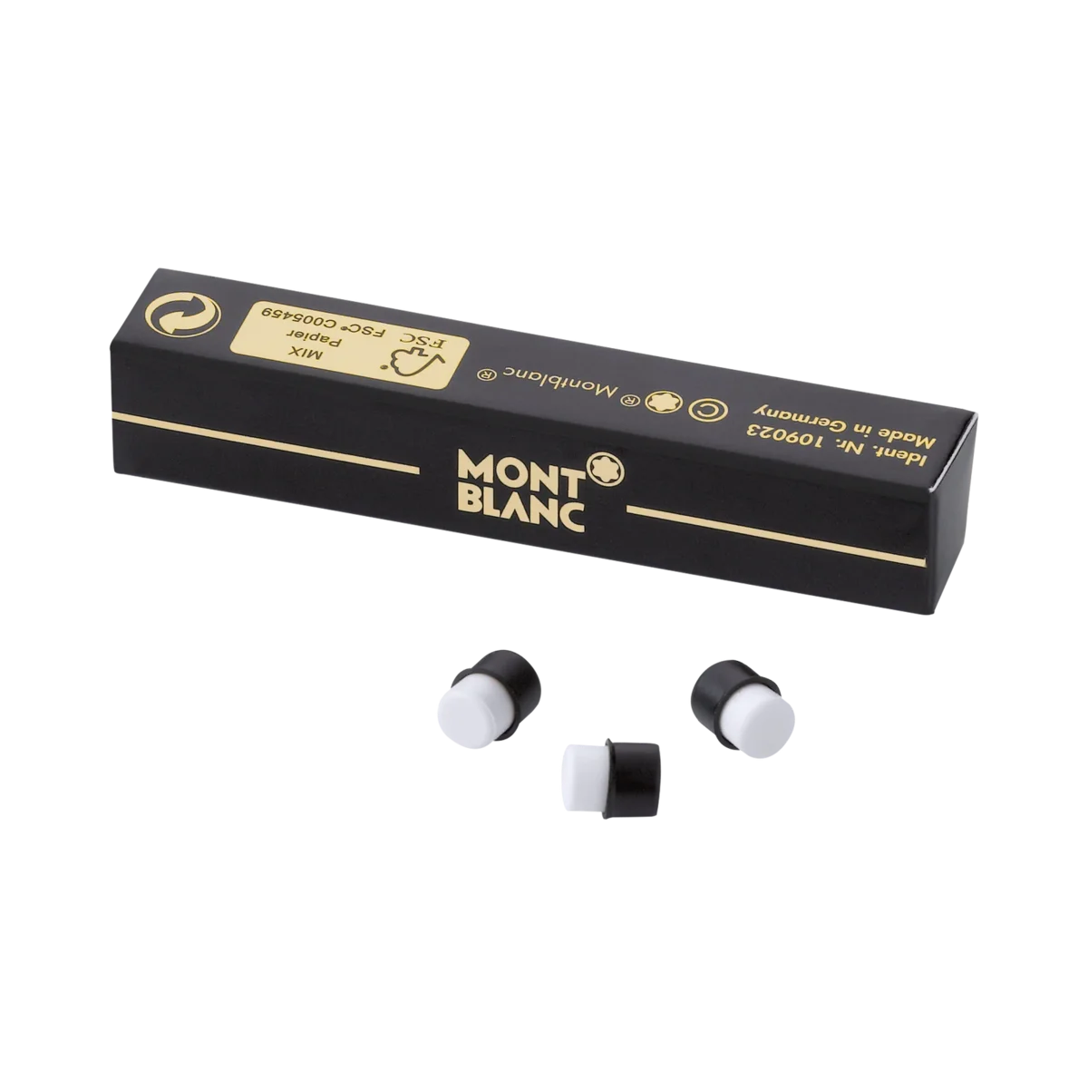 Detalles y composición. Goma de borrar Montblanc para todas las versiones de lápices mecánicos Montblanc Meisterstück Classique, Meisterstück Solitaire, StarWalker y Etoile de Montblanc. Unidades de embalaje = 10 piezas. N.º de identificación: MB109023.