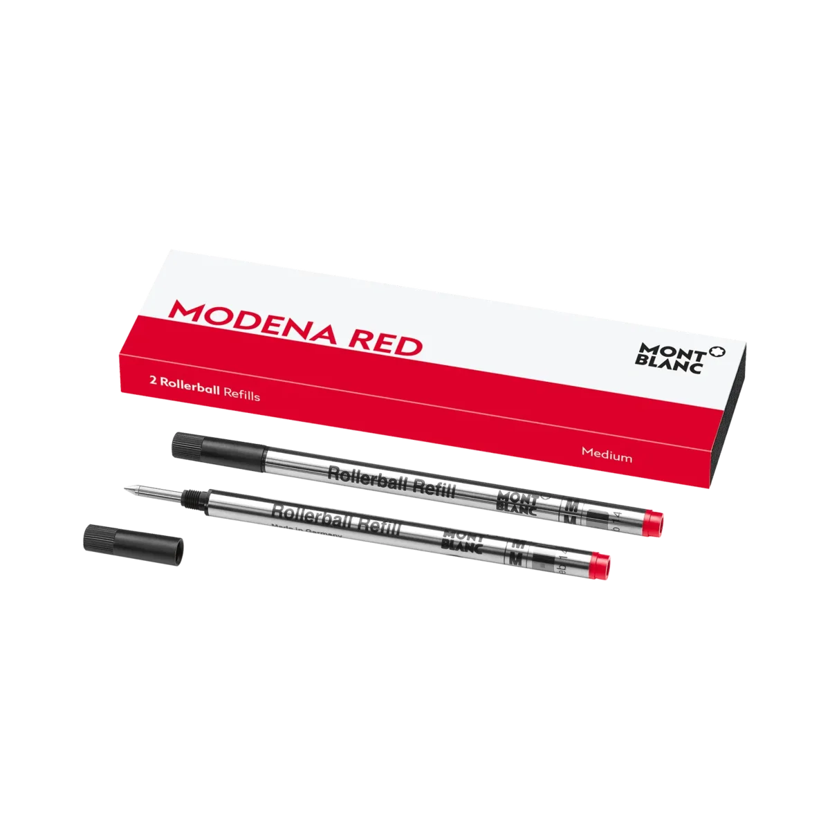 Recambios para bolígrafos roller Montblanc, rojo Modena. Apto para todos los bolígrafos roller/fineliner Montblanc, excepto Meisterstück LeGrand, Montblanc M y los bolígrafos roller sin capuchón de la colección Heritage. Unidades de embalaje = 2 recambios. M = Medio