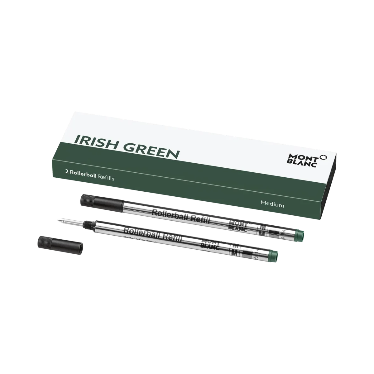 Recambios para bolígrafos roller Montblanc, verde irlandés. Apto para todos los bolígrafos roller/fineliner Montblanc, excepto Meisterstück LeGrand, Montblanc M y los bolígrafos roller sin capuchón de la colección Heritage. Unidades de embalaje = 2 recambios. M = Medio.