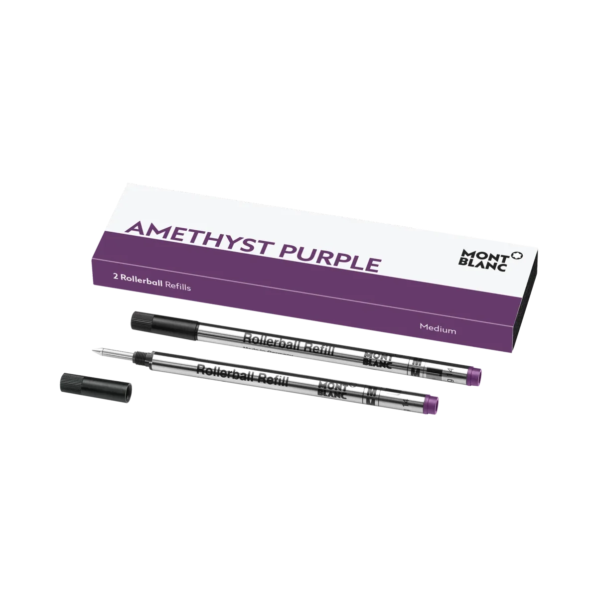 Recambios para bolígrafos roller Montblanc, color púrpura amatista. Apto para todos los bolígrafos roller/fineliner Montblanc, excepto Meisterstück LeGrand, Montblanc M y bolígrafos roller sin capuchón de la colección Heritage. Unidades de embalaje = 2 recambios. M = Medio