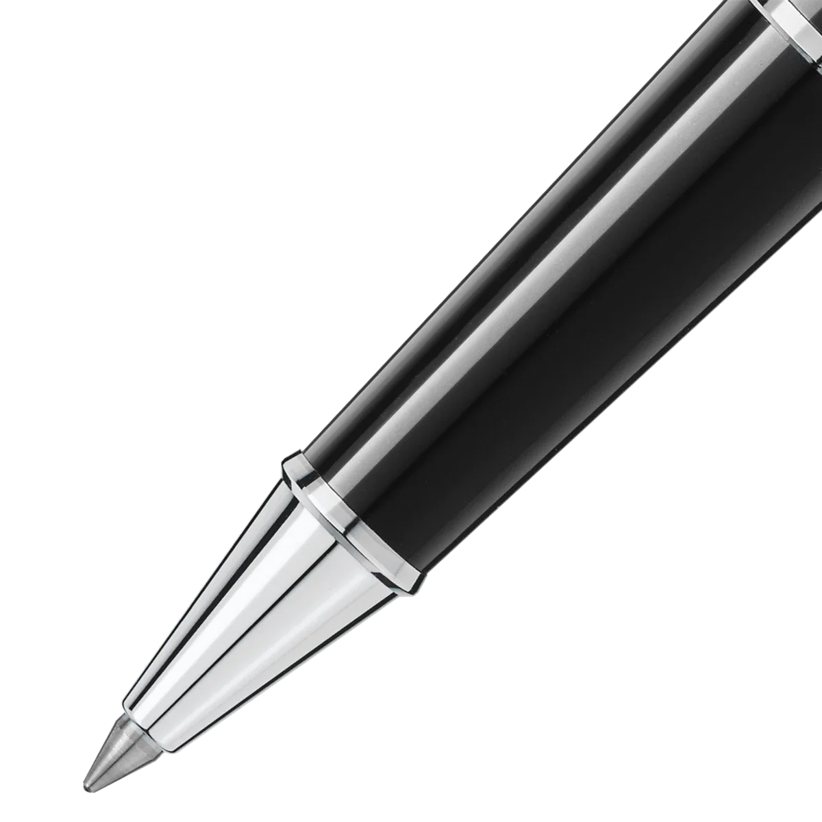 La Meisterstück Solitaire Geometric Dimension nació del deseo de unir el diseño clásico de Montblanc con materiales únicos. Este instrumento de escritura está fabricado en resina preciosa negra, con un grabado tridimensional de motivos geométricos en el capuchón con efecto óptico en un sofisticado tono platino, un clip recubierto de platino y tres anillos recubiertos de platino con el nombre de la marca Montblanc en relieve. Acabado con el emblema de Montblanc, apela a la individualidad de cada persona. N.º de identificación: MB132502 Peso físico: 34,6 g Dimensiones: 136,9 mm * 12,5 mm