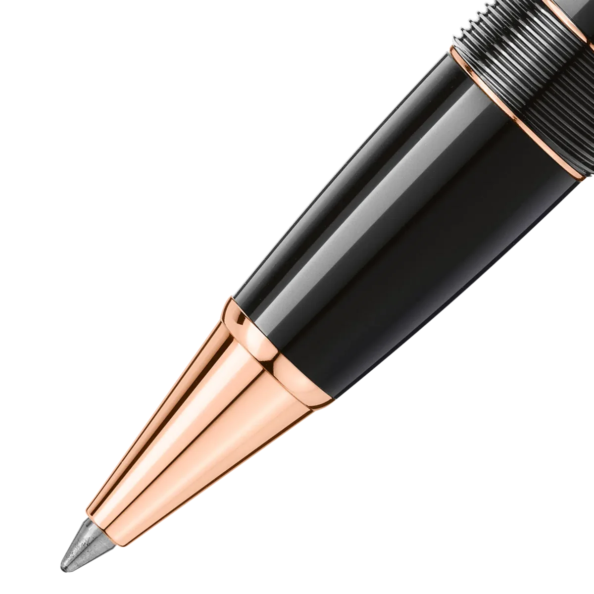 La colección Meisterstück LeGrand con baño de oro rosa de Montblanc es un diseño que hace historia. Presentada en 1924, Meisterstück, que significa «obra maestra», se ha convertido en el símbolo de la escritura de lujo de alta calidad. El capuchón y el cuerpo están elaborados en resina preciosa negra con el emblemático emblema blanco de Montblanc incrustado en la parte superior del capuchón. N.º de identificación: MB132481. Peso físico: 35,91 g. Dimensiones: 145,3 mm x 15,5 mm.
