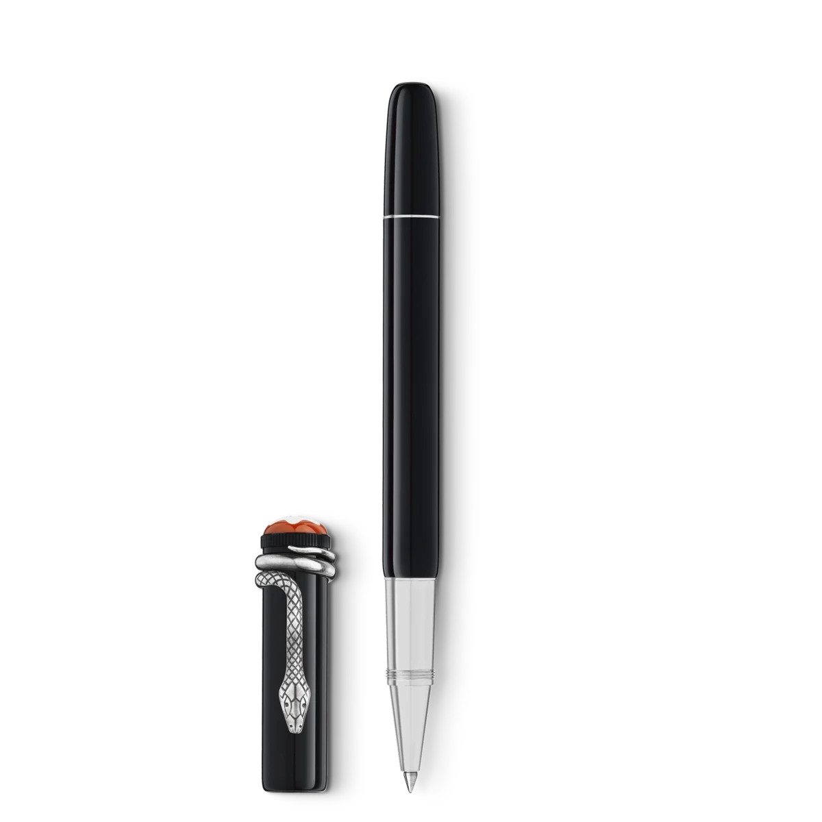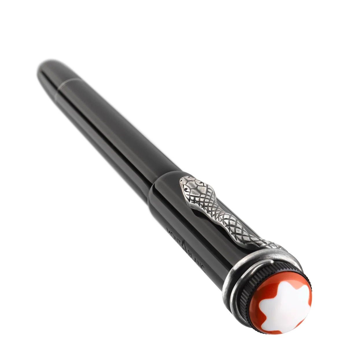 Cuando se desarrolló en 1906, la pluma estilográfica «Rouge et Noir» se consideró un logro técnico excepcional, ya que garantizaba un funcionamiento sencillo sin necesidad de mojar la plumilla en un tintero. La colección Heritage Rouge et Noir celebra los 110 años de espíritu pionero de Montblanc. Reinterpretando el legendario instrumento de escritura, presenta una silueta más larga y delgada y una artesanía refinada a lo largo de generaciones. Clip Snake de aspecto vintage con accesorios a juego. El clip se fabrica mediante un proceso de estampado y enrollado en una aleación metálica especial, y se envejece mediante un proceso galvánico y de decapado único. N.º de identificación: MB132109. Peso físico: 155 g. Dimensiones: 136 mm x 16 mm.