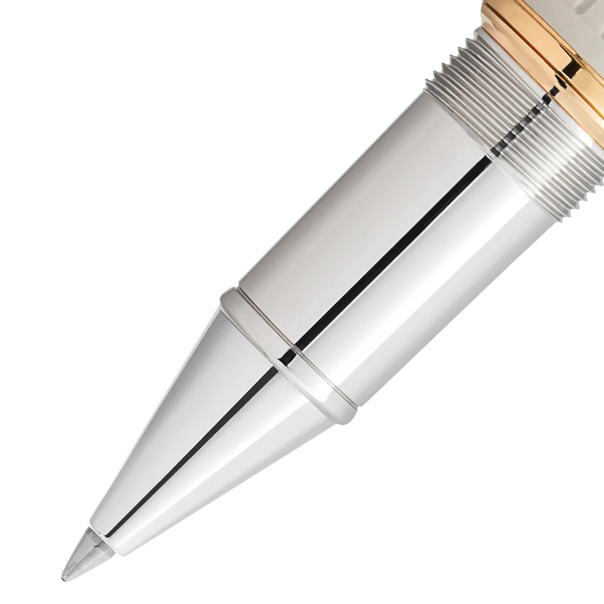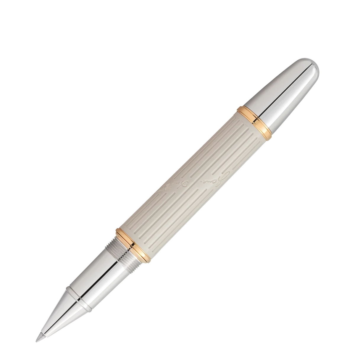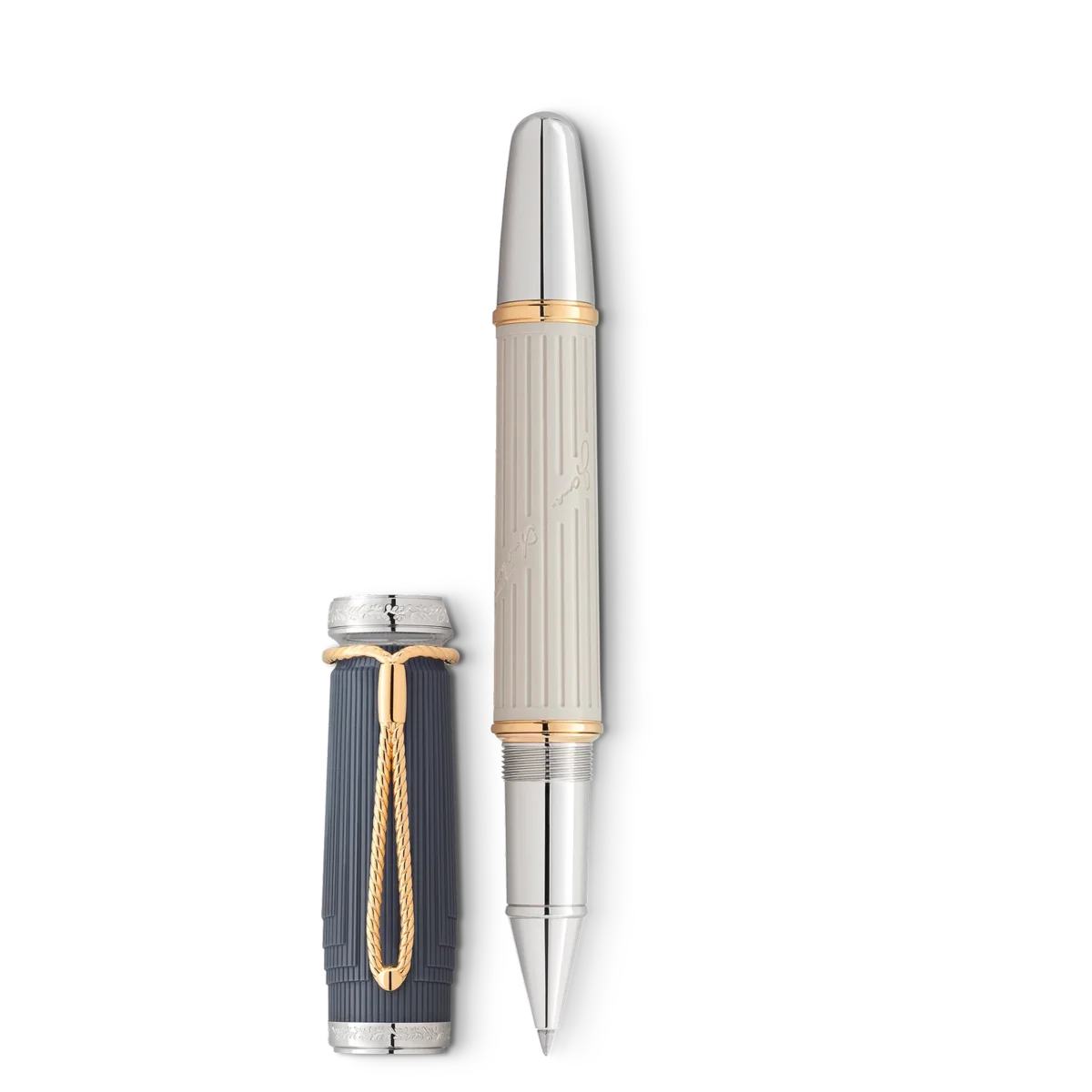 Pocos autores en la historia de la literatura han tenido la capacidad de crear diálogos y dar vida a los personajes con tanta elegancia, ironía y astucia como la autora británica Jane Austen. Montblanc ha creado la Writers Edition Homage to Jane Austen para rendir homenaje a una de las autoras más famosas de la literatura inglesa.Esta edición da vida a la época de la Regencia, cuando las nobles fincas rurales eran el escenario de grandes fiestas celebradas con el fin de cultivar las relaciones sociales y forjar alianzas matrimoniales. Las estrías de una columna clásica adornan el elegante cuerpo de resina gris arenisca, junto con la firma de Jane Austen. El contraste del capuchón gris azulado hace referencia al tipo de abrigo de doble cuello de la Regencia que solían llevar caballeros como el señor Darcy en Orgullo y prejuicio. Los anillos recubiertos de oro del cuerpo y los accesorios chapados en platino añaden los toques finales al diseño. El grabado de los números romanos XLIII en el anillo del capuchón hace referencia al capítulo de la novela en el que Elizabeth Bennet ve por primera vez la finca del señor Darcy.La portada de su novela Sentido y sensibilidad, publicada en 1811, simplemente declaraba que la obra había sido escrita «por una dama». Esta declaración de autoría adorna la parte superior del capuchón de la Writers Edition Homage to Jane Austen Limited Edition, junto con el emblema de Montblanc. La silueta del instrumento de escritura se asemeja a un sello de cera. El clip es tan inusual como el capuchón. Con forma de cordón trenzado con cierre de cordón, se asemeja al de un «retículo», un tipo de bolso que utilizaban las mujeres alrededor de 1800 para llevar sus polvos, espejo y el indispensable pañuelo de bolsillo.N.º de identificación: MB130673 Peso físico: 71,49 g Dimensiones: 147,8 mm * 18,8 mm
