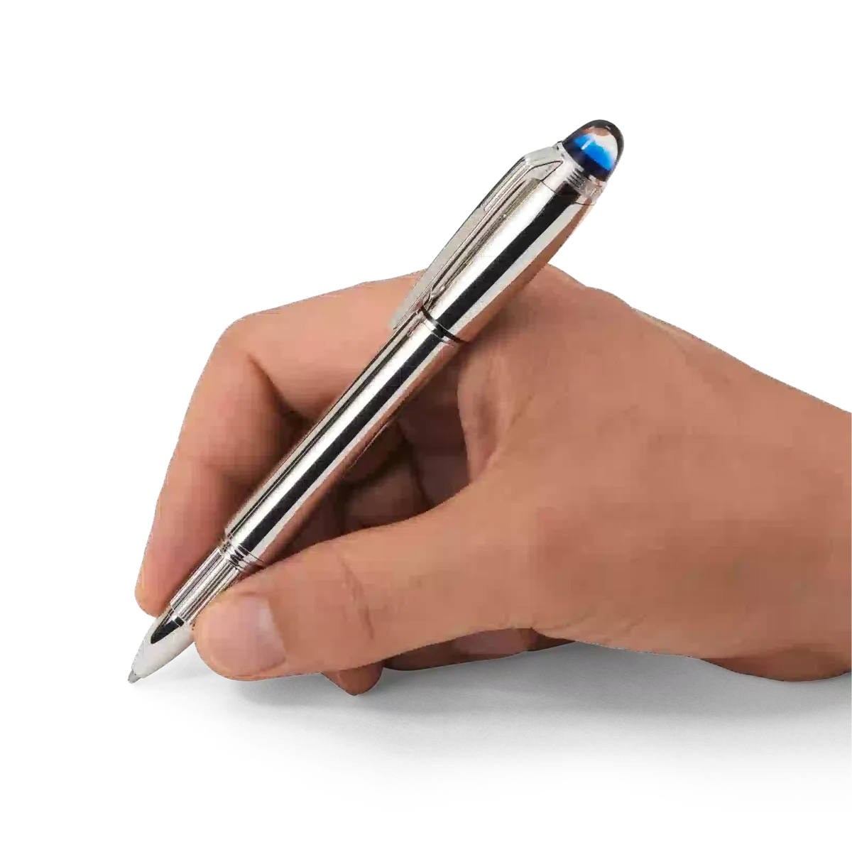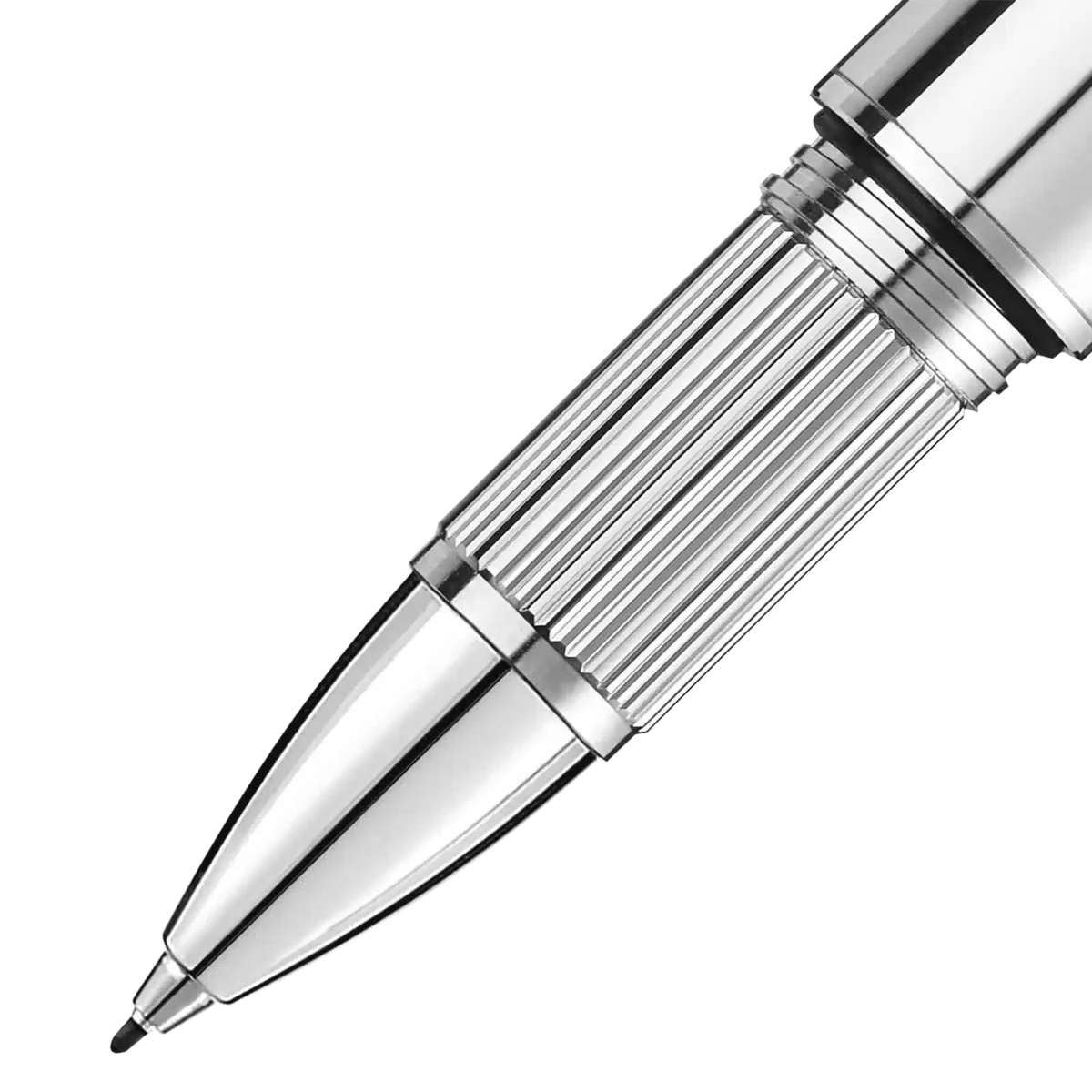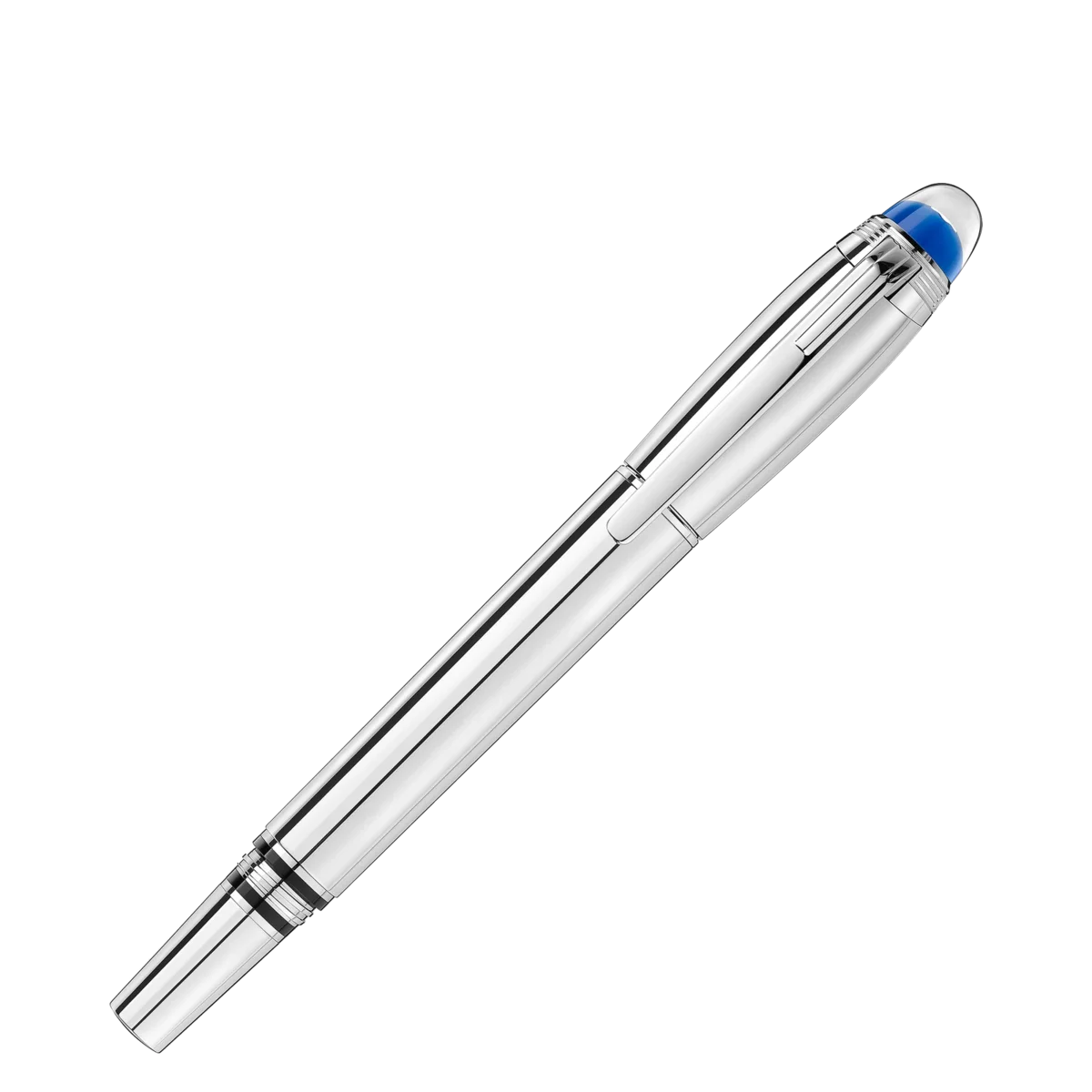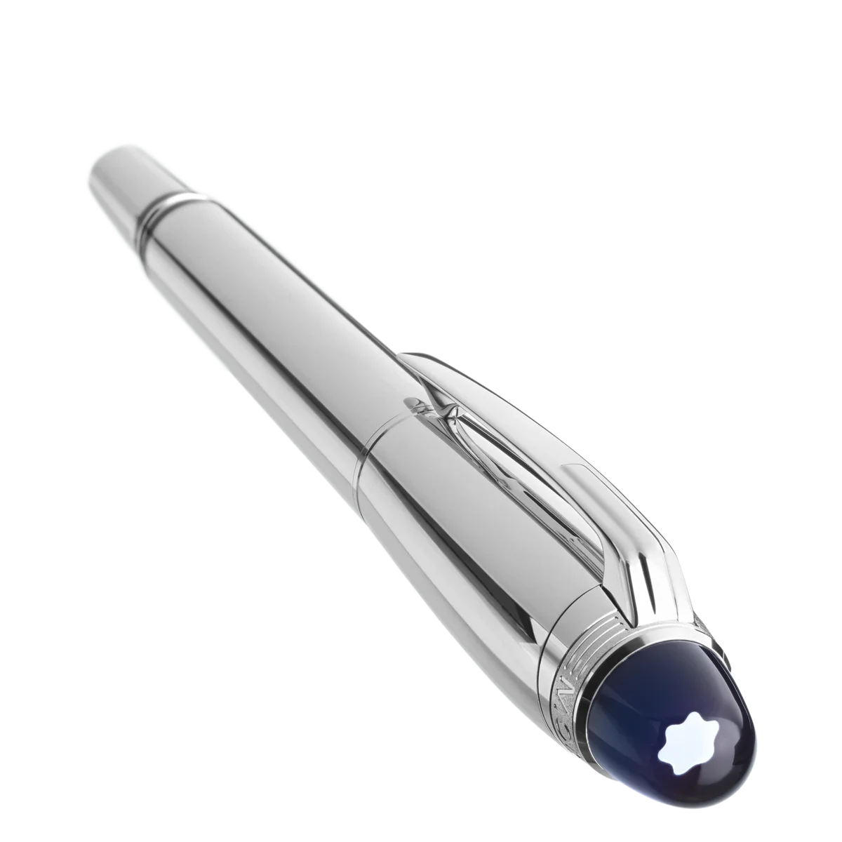 El nuevo StarWalker trata sobre caminar entre las estrellas. Trata sobre explorar el cosmos y galaxias lejanas. Trata sobre formar parte de una de las aventuras más misteriosas y poderosas de la humanidad: la exploración espacial. El nuevo diseño de la colección celebra la inmensa emoción, descrita por todos los viajeros espaciales, de ver nuestro planeta azul flotando en la inmensidad del espacio. La exclusiva tecnología del emblema StarWalker presenta una cúpula azul translúcida bajo el emblema de Montblanc, que recuerda a la Tierra emergiendo sobre el horizonte lunar. El StarWalker Metal viene con un capuchón, accesorios y cuerpo recubiertos de platino. N.º de identificación: MB132512 Peso físico: 50,28 g Dimensiones: 135,4 mm * 14,9 mm