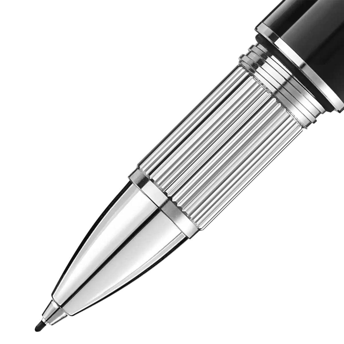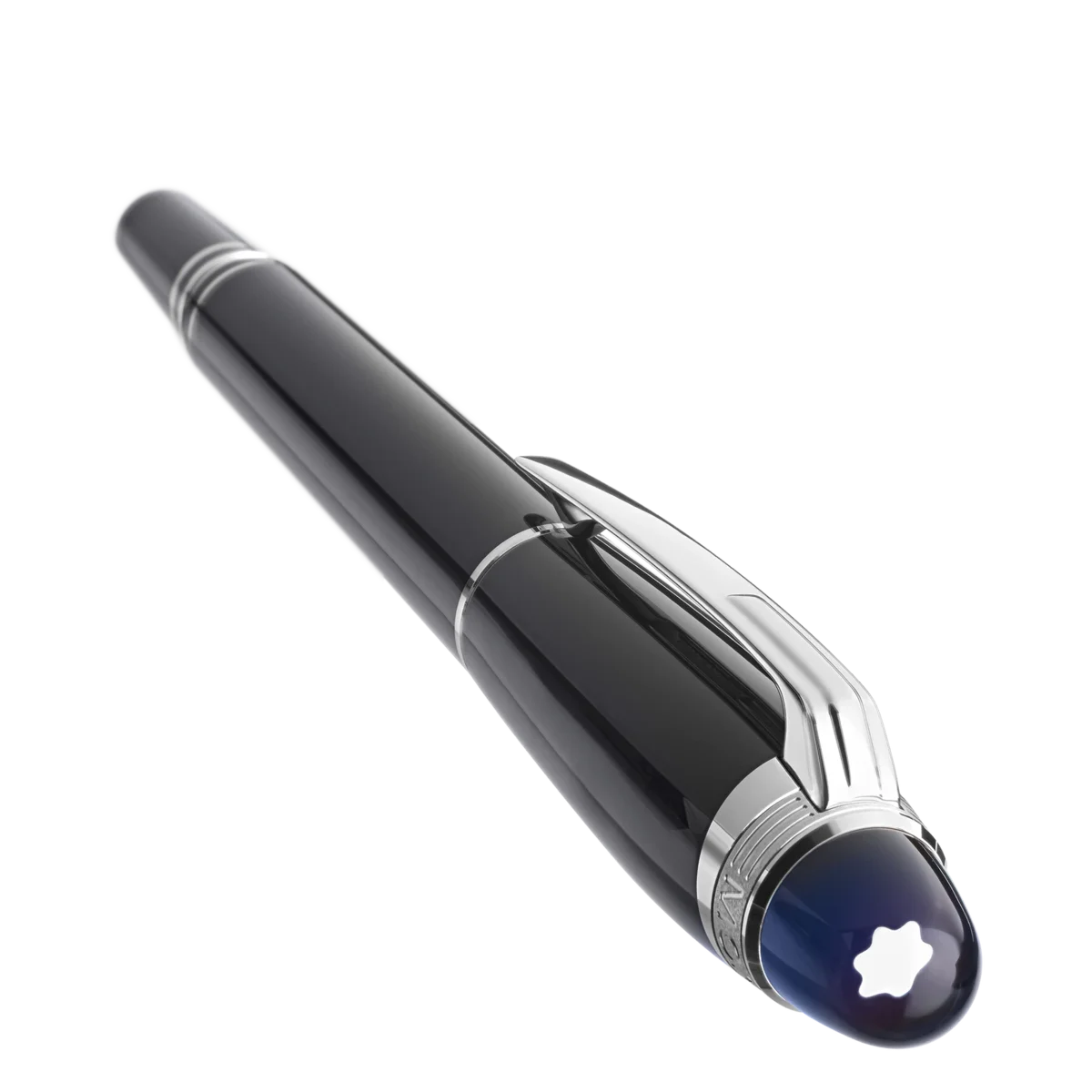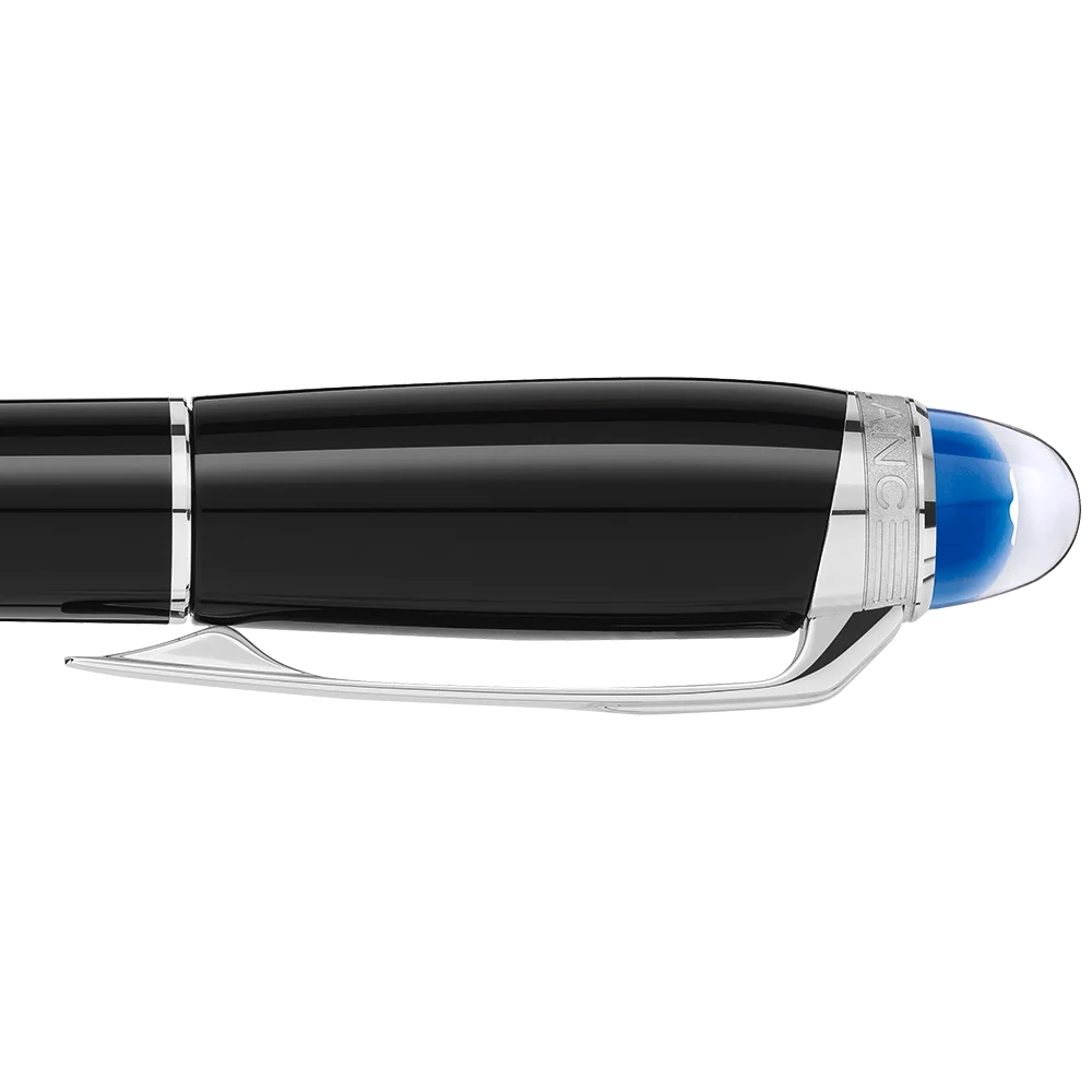 El nuevo StarWalker trata sobre caminar entre las estrellas. Trata sobre explorar el cosmos y galaxias lejanas. Trata sobre formar parte de una de las aventuras más misteriosas y poderosas de la humanidad: la exploración espacial. El nuevo diseño de la colección celebra la inmensa emoción, descrita por todos los viajeros espaciales, de ver nuestro planeta azul flotando en la inmensidad del espacio. La exclusiva tecnología del emblema StarWalker presenta una cúpula azul translúcida bajo el emblema de Montblanc, que recuerda a la Tierra emergiendo sobre el horizonte lunar. El StarWalker Precious Resin viene con accesorios recubiertos de platino y un cuerpo y capuchón de resina preciosa negra. N.º de identificación: MB132508. Peso físico: 28,03 g. Dimensiones: 135,4 mm * 14,9 mm.