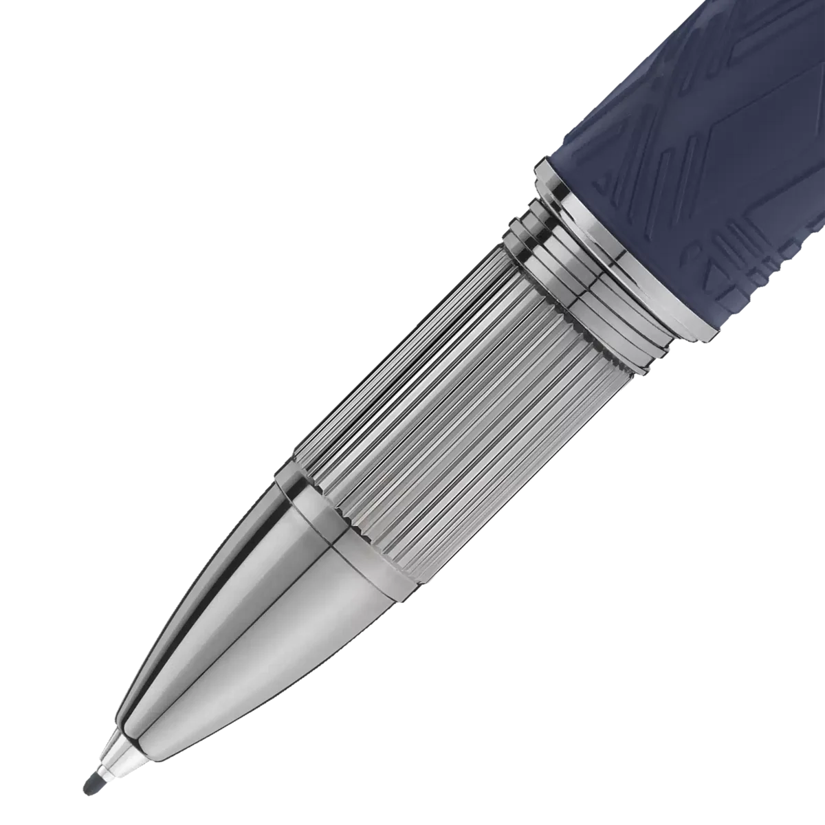 StarWalker SpaceBlue mira más allá del planeta Tierra y se dirige hacia las estrellas y la galaxia. Esta nueva colección StarWalker aporta un nuevo aspecto al cuerpo de resina, con un diseño que recuerda las intrincadas estructuras del patrón de Widmanstätten, una de las creaciones más hipnóticas de la naturaleza. Todas las piezas metálicas están recubiertas de rutenio oscuro, acompañado de un tono azul espacio profundo para la resina preciosa mate, que recuerda los matices de un cielo estrellado. Además, la subcúpula de la parte superior del capuchón, sobre la que flota el emblema de Montblanc, es de color azul espacio profundo.N.º de identificación: MB130216 Peso físico: 38,52 g Dimensiones: 135,5 mm * 13,1 mm