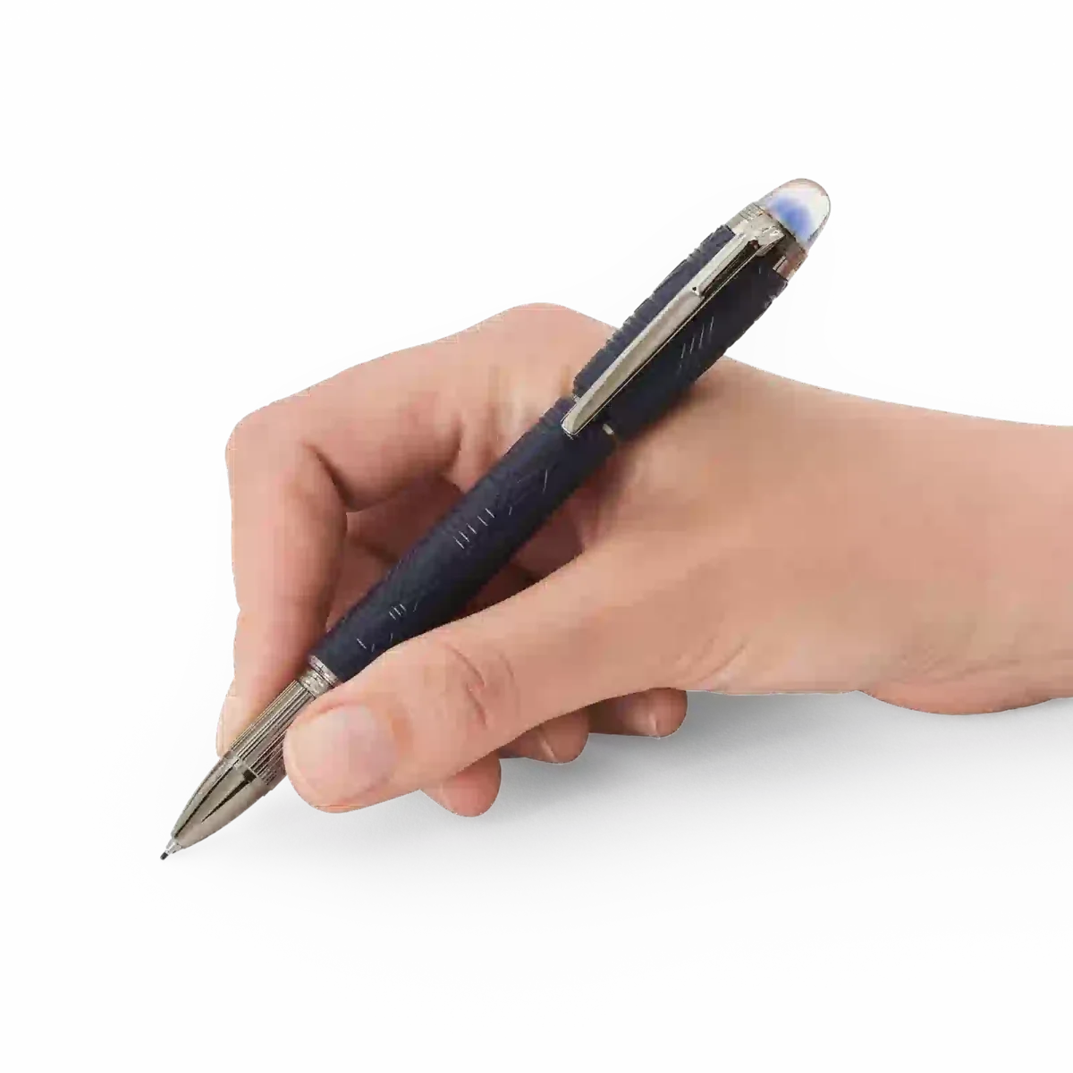 StarWalker SpaceBlue mira más allá del planeta Tierra y se dirige hacia las estrellas y la galaxia. Esta nueva colección StarWalker aporta un nuevo aspecto al capuchón y al cuerpo de resina, con un diseño que recuerda las intrincadas estructuras del patrón de Widmanstätten, una de las creaciones más hipnóticas de la naturaleza. Todas las piezas metálicas están recubiertas de rutenio oscuro, acompañado de un tono azul espacio profundo para la resina preciosa mate, que recuerda los matices de un cielo estrellado. Además, la subcúpula de la parte superior del capuchón, sobre la que flota el emblema de Montblanc, es de color azul espacio profundo.N.º de identificación: MB130212 Peso físico: 30,45 g Dimensiones: 135,4 mm * 14,9 mm