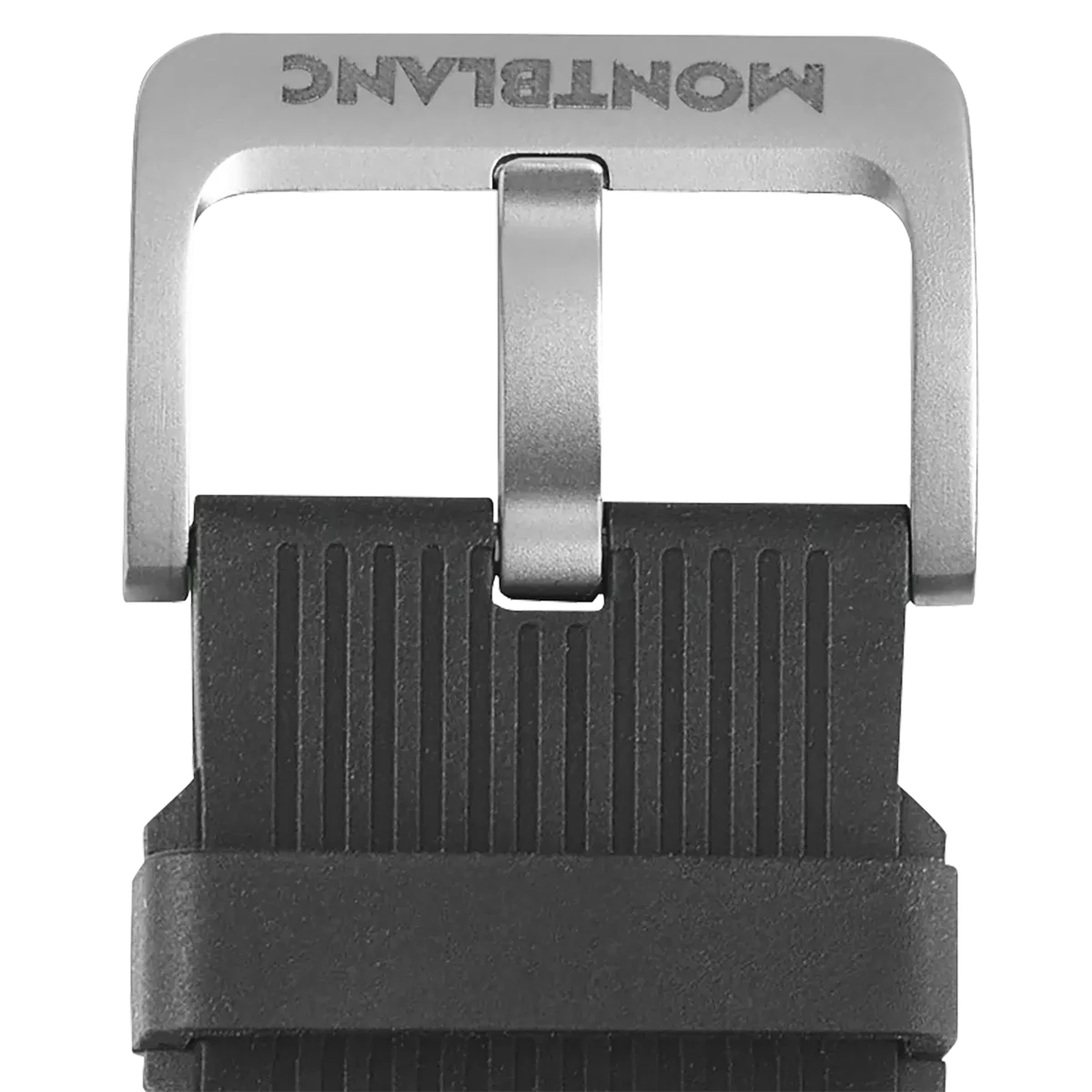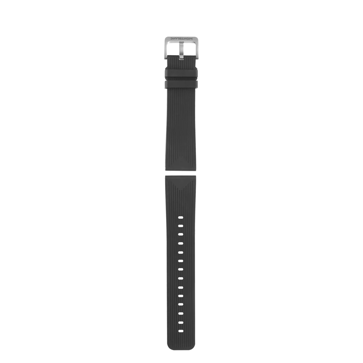 Descubra todos los detalles de la correa de caucho negra a rayas. Compre en línea en la tienda oficial de Montblanc.