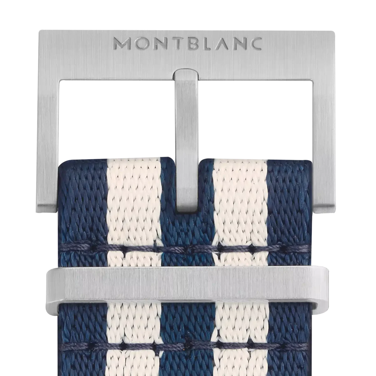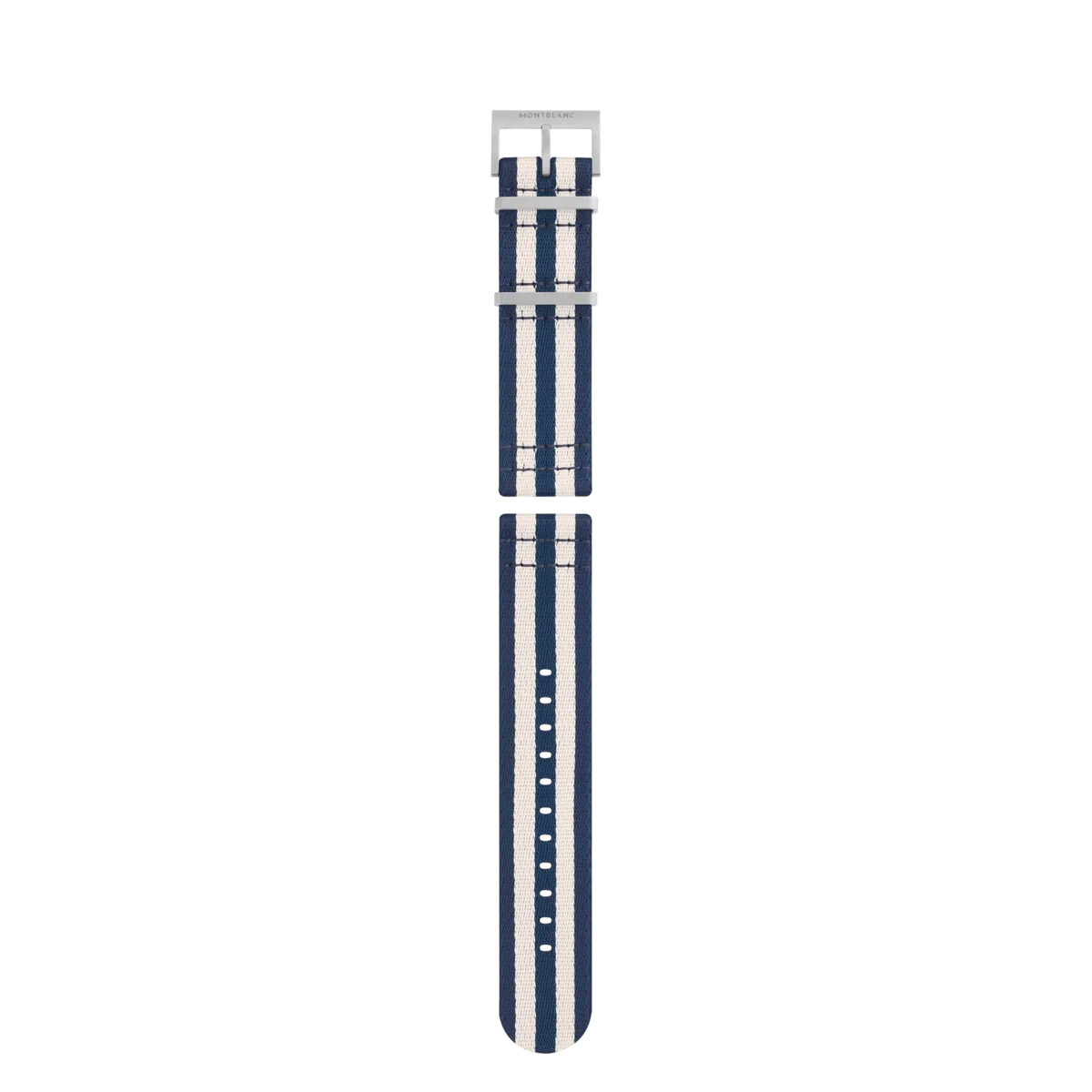 Descubra todos los detalles de la correa de nylon azul y blanco. Compre en línea en la tienda oficial de Montblanc.