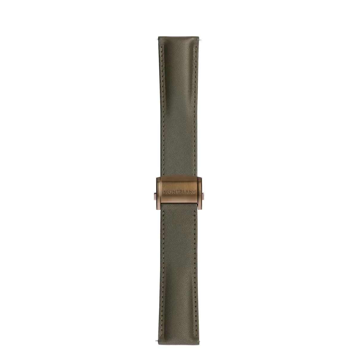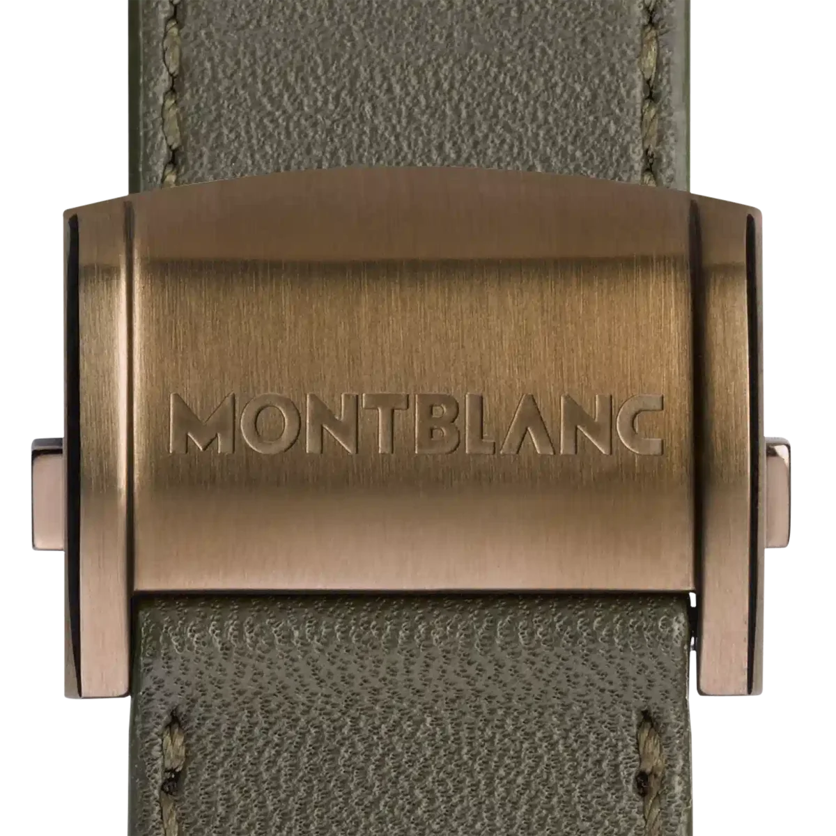 Correa de piel de becerro caqui de 22 mm con cierre desplegable ajustable de color bronce fabricado en acero inoxidable. Compatible con todos los relojes inteligentes Montblanc Summit. N.º de identificación: MB127738. Contenido de la caja. Pago. Diseño.