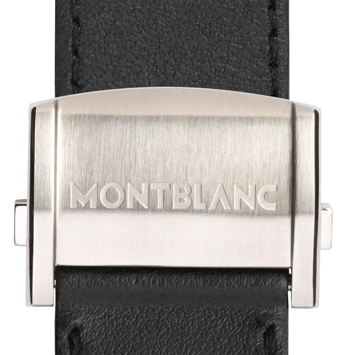 Descubra todos los detalles de la correa de piel negra. Compre en línea en la tienda oficial de Montblanc.